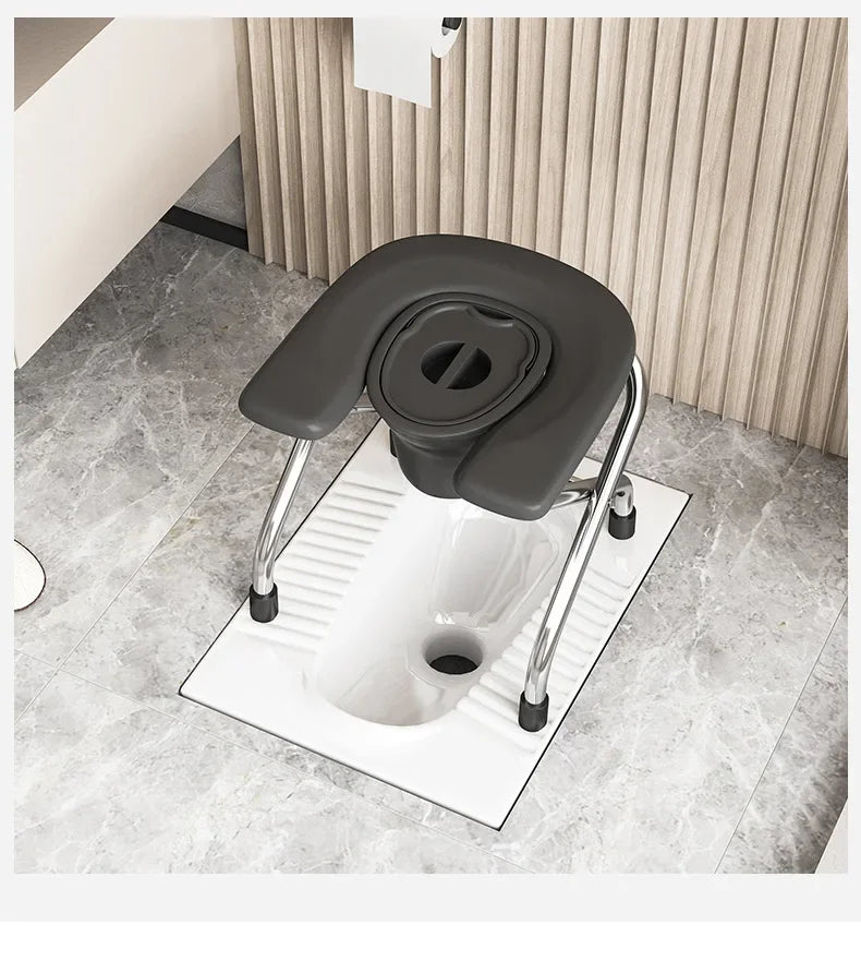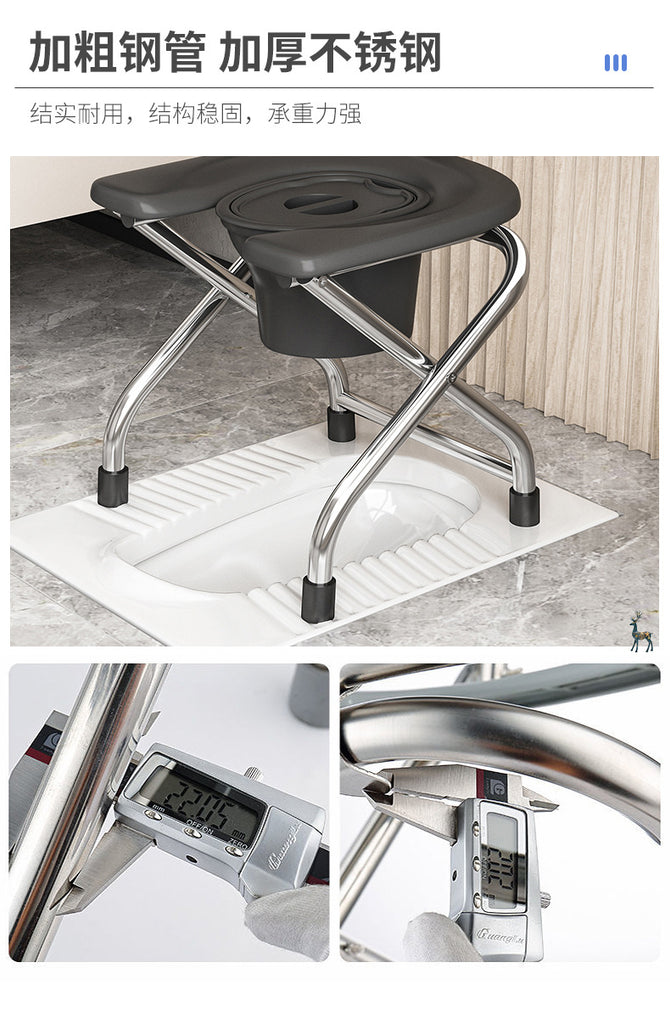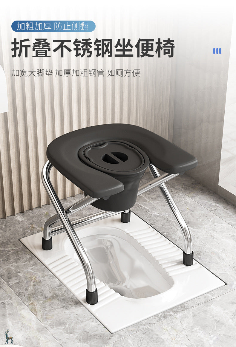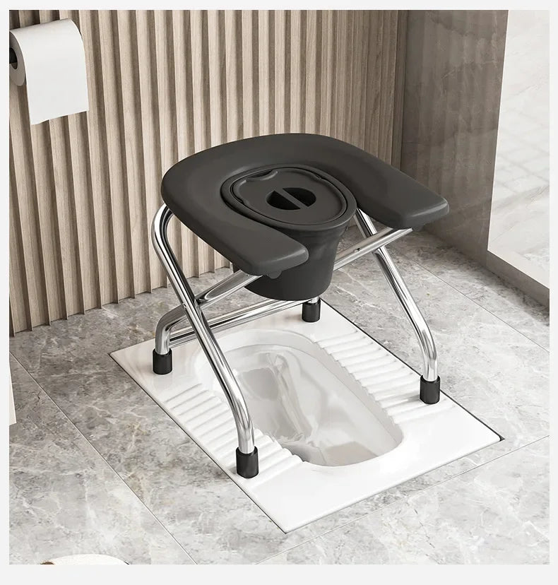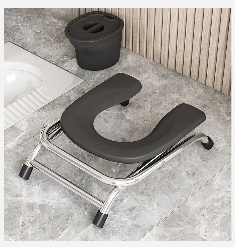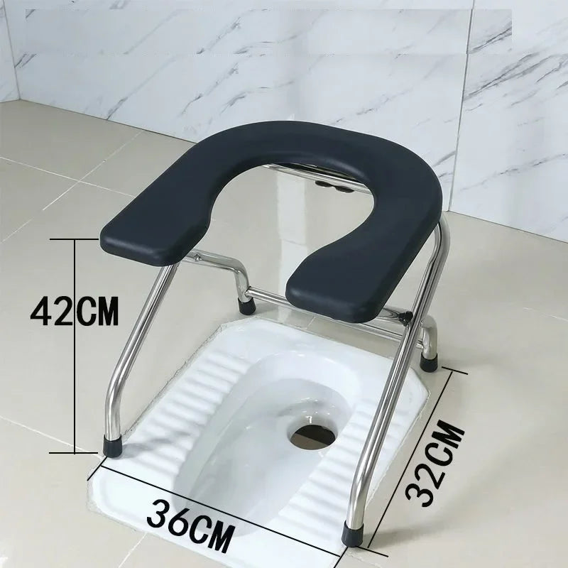 Folding U-Shape Toilet Seat & Stool for Pregnant, Elderly, Squat, Sit - Stainless Steel