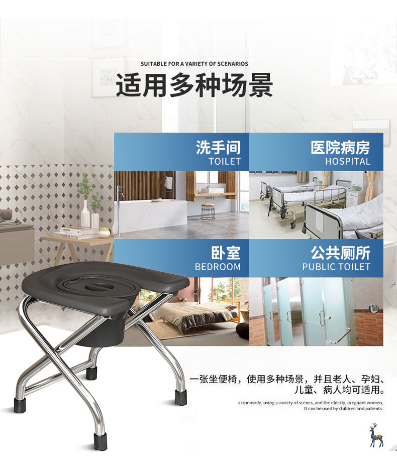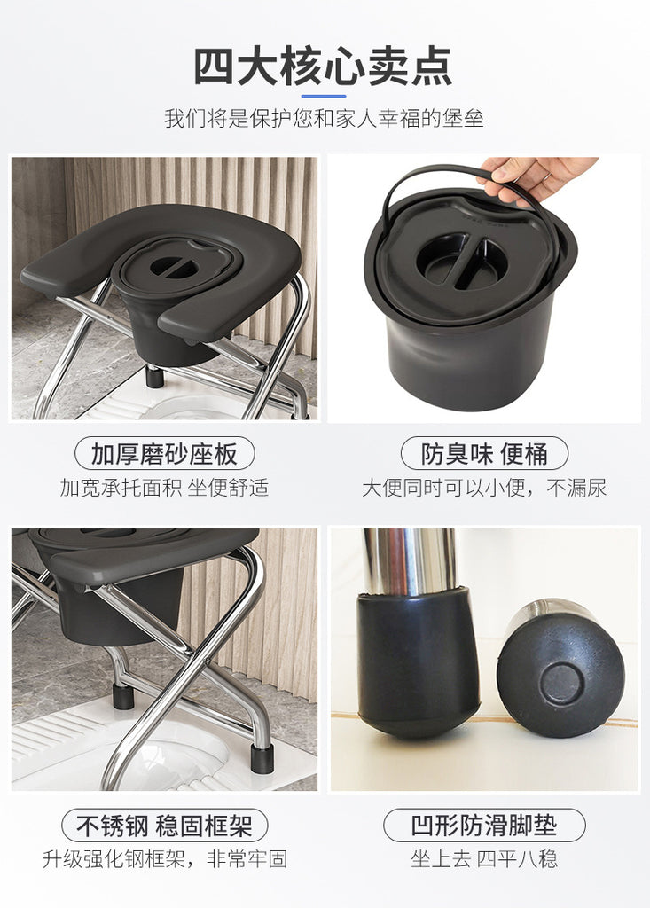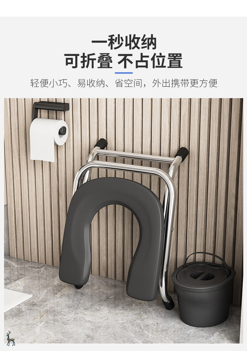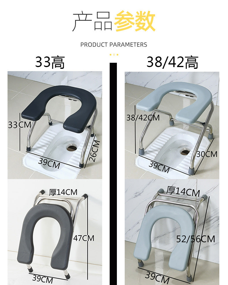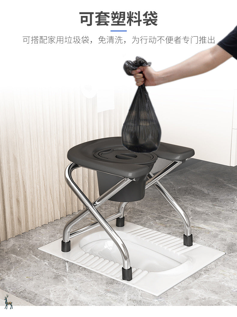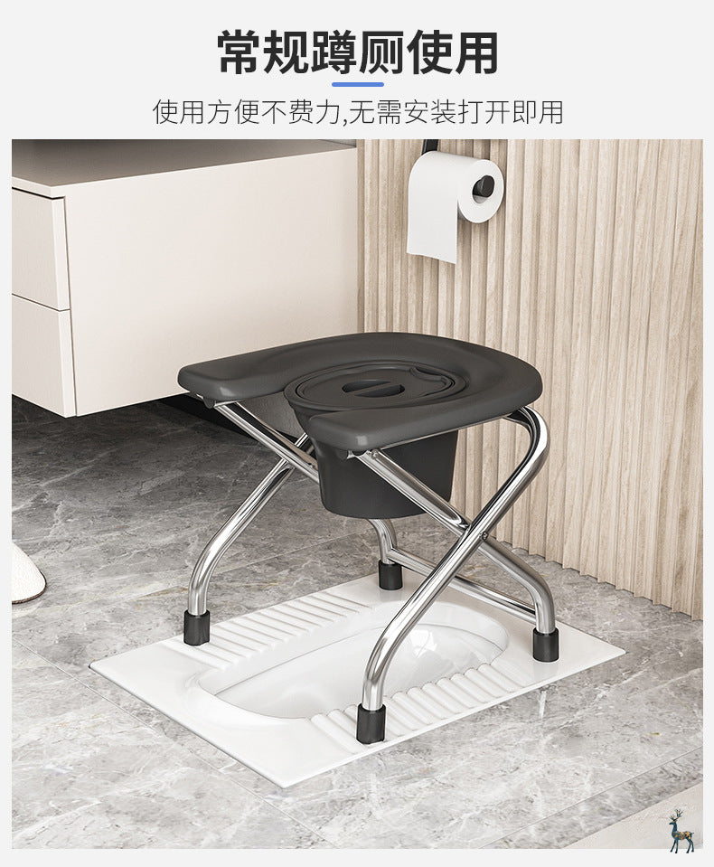 Folding U-Shape Toilet Seat & Stool for Pregnant, Elderly, Squat, Sit - Stainless Steel