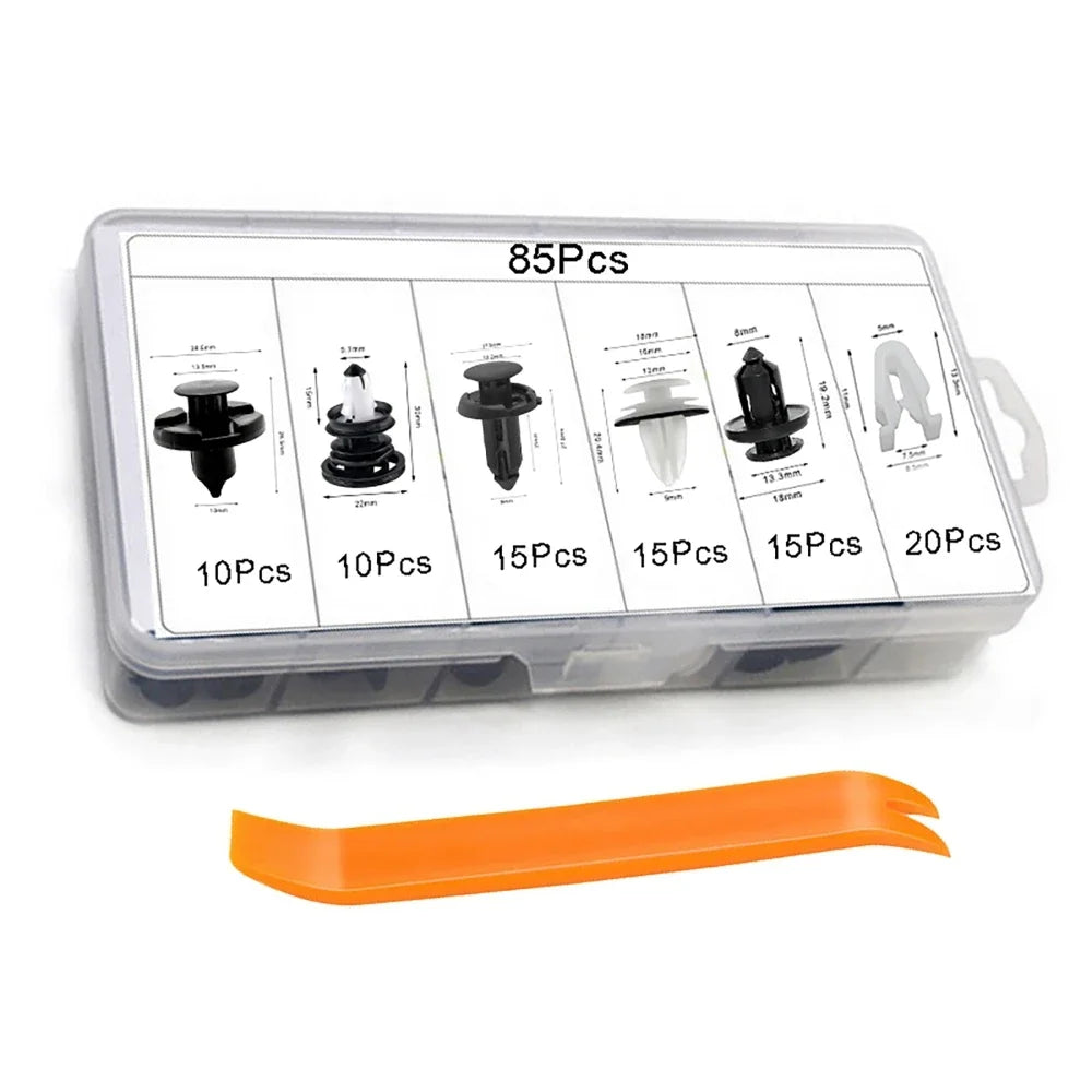 - Complete Rivet Kit: 1 fastener remover and 85 bumper clips.