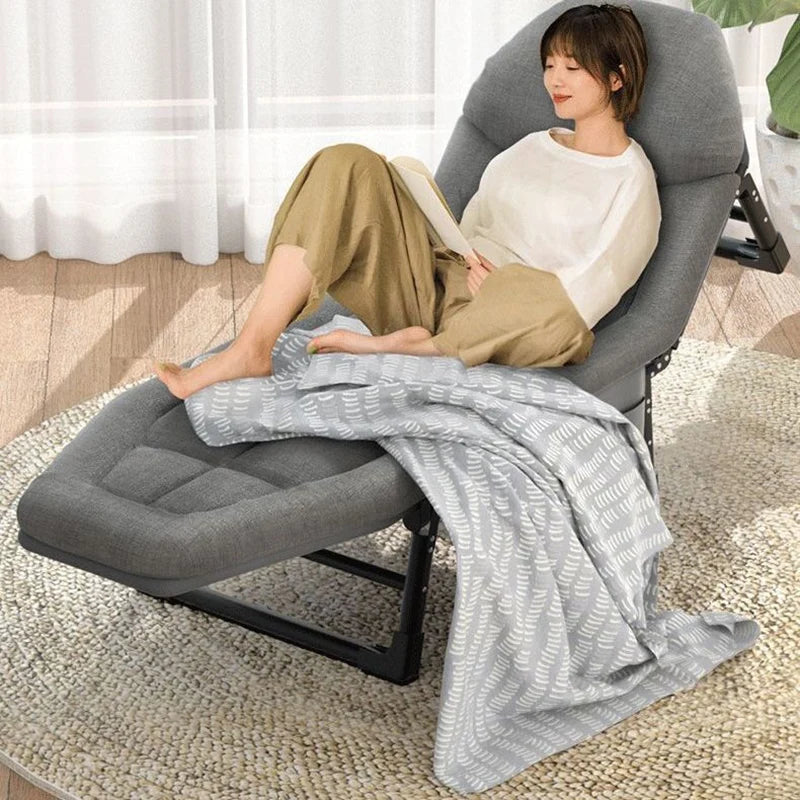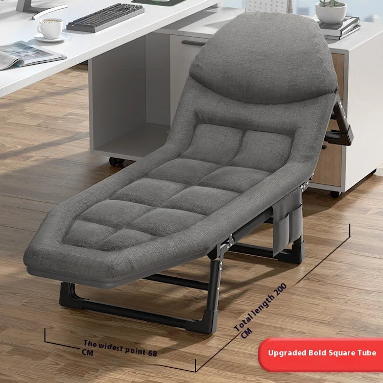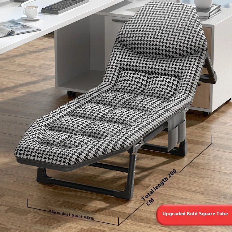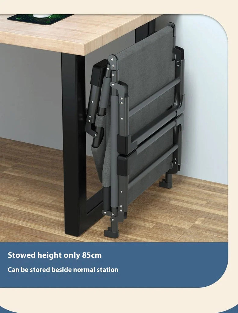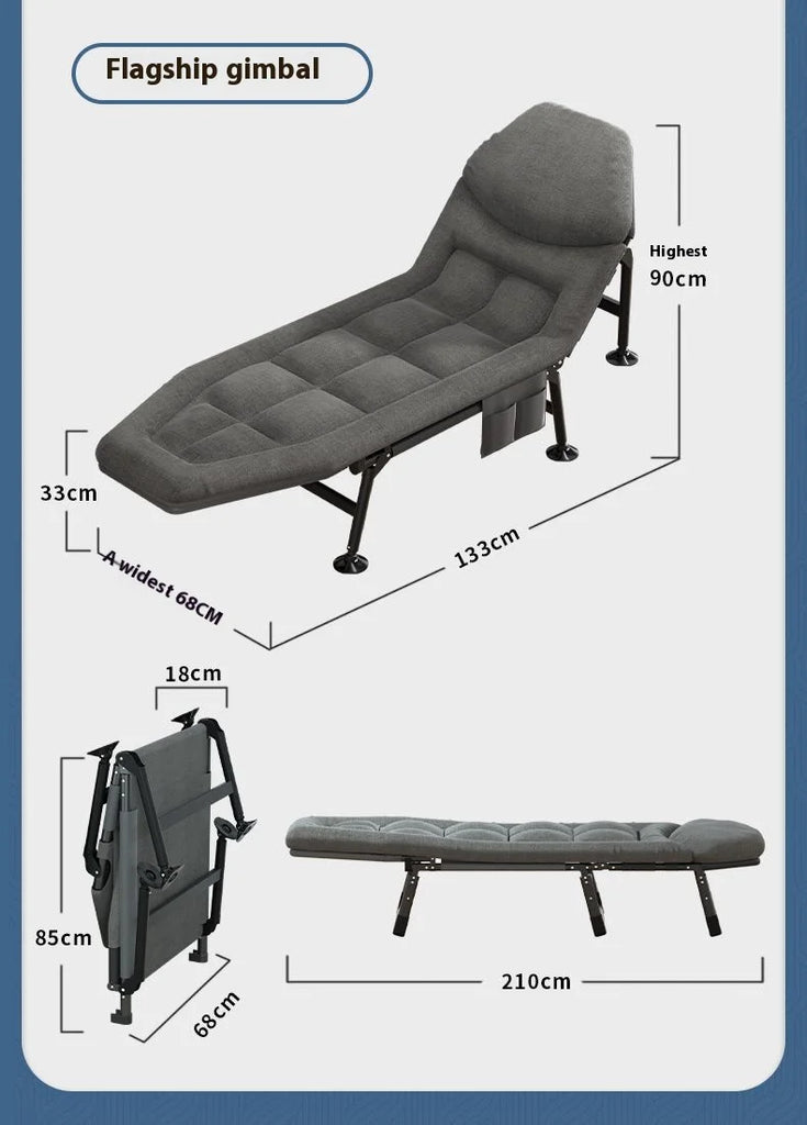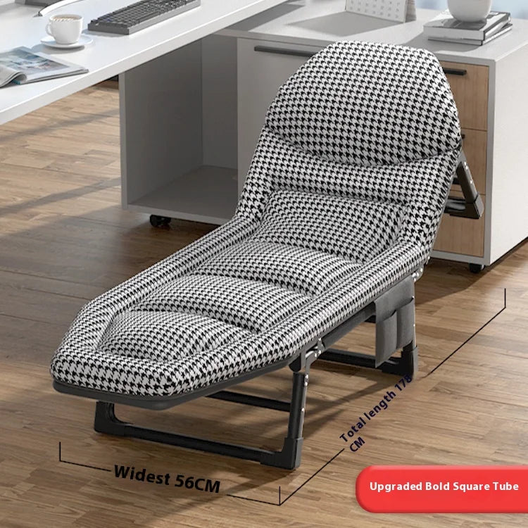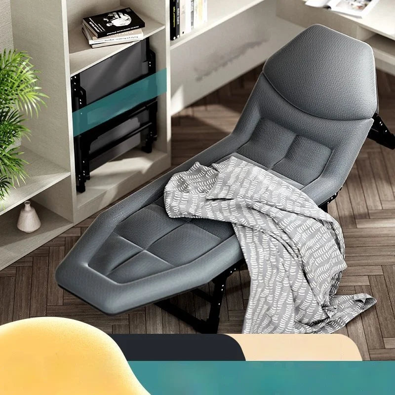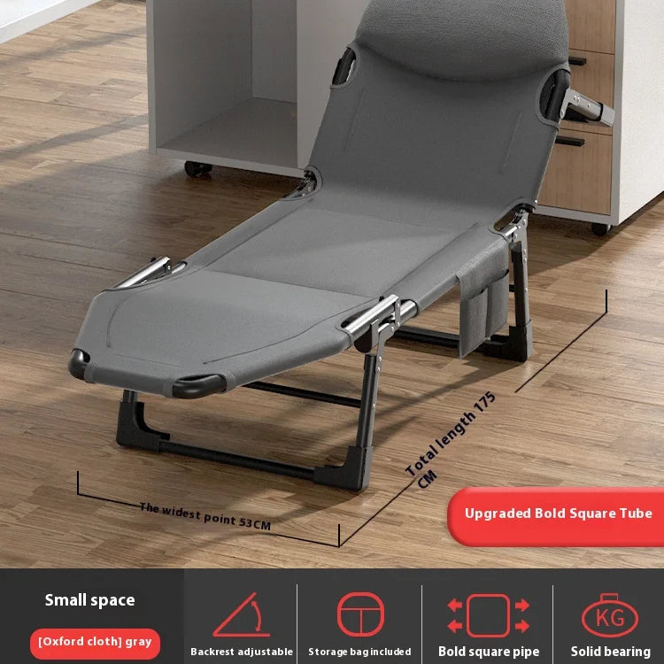 The chaise lounge features a simple three-fold design, allowing it to be stored effortlessly in just 10 seconds. Its right-angle, non-slip foot pads stabilize the bed, ensuring even distribution of weight. Additionally, the noise-cancelling fabric and soundproof cloth design in the steel pipe parts minimize disturbances, providing a serene sleeping experience.