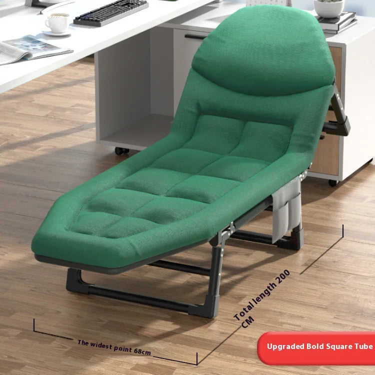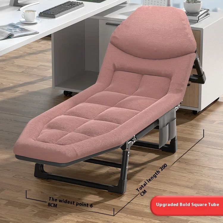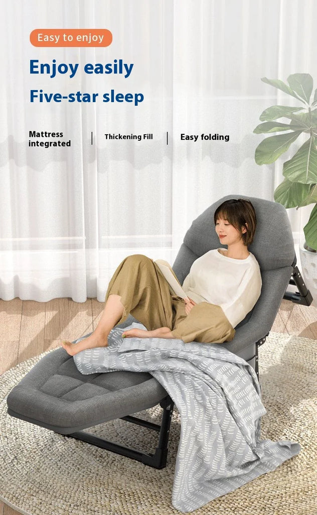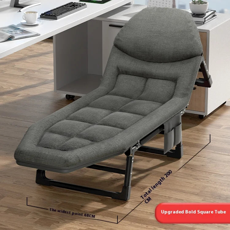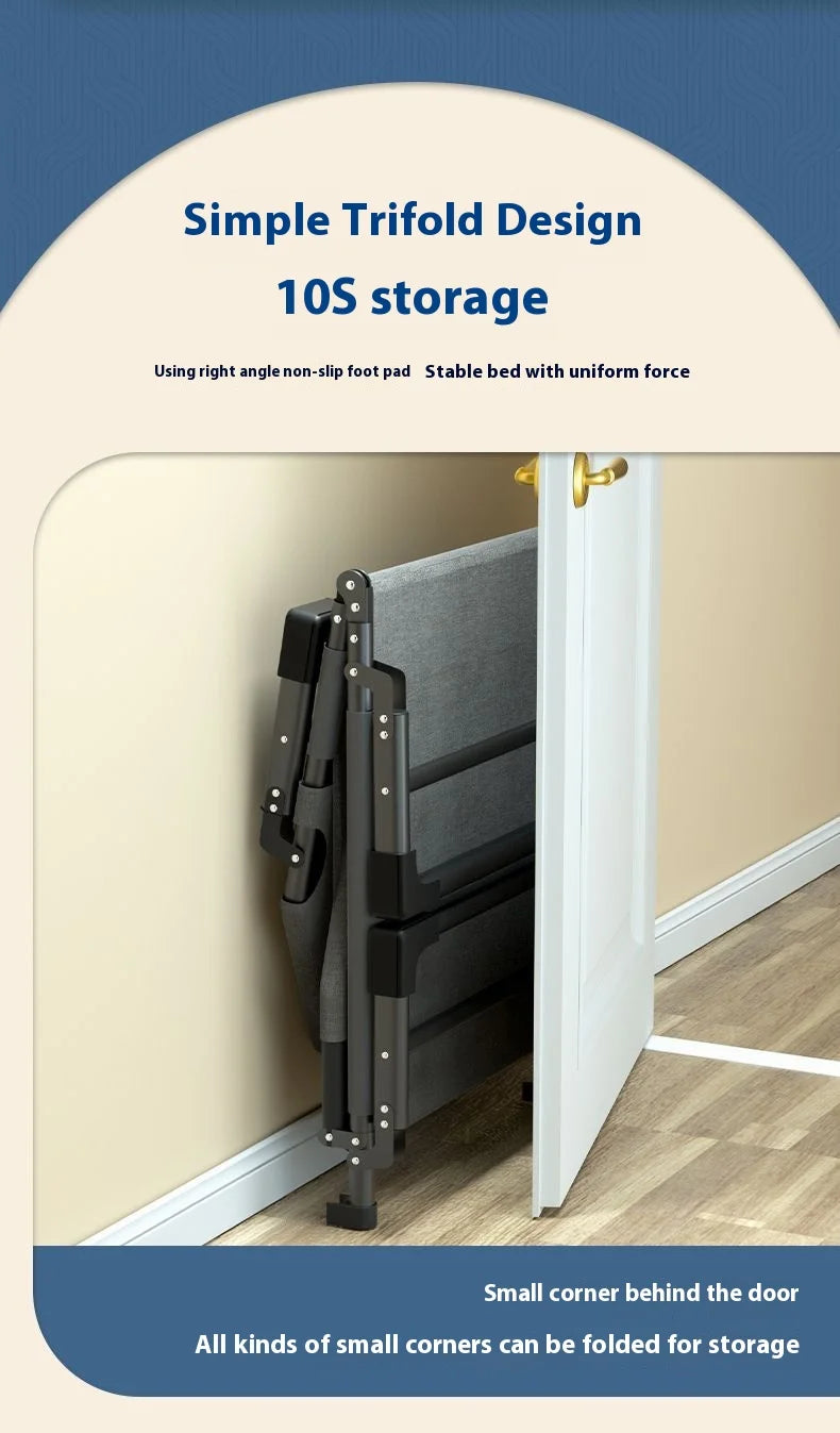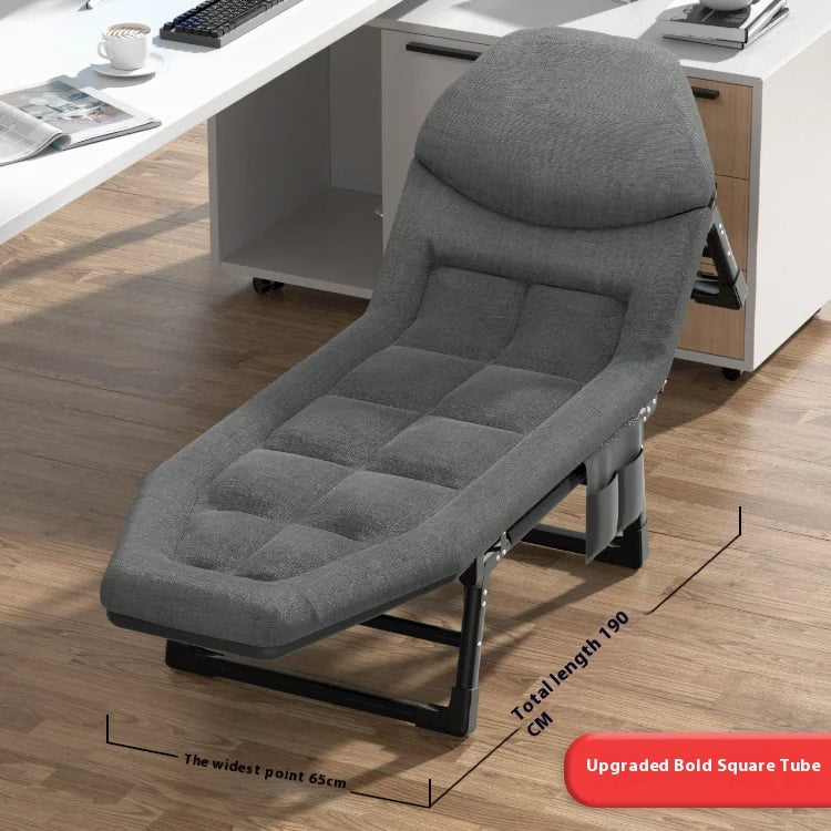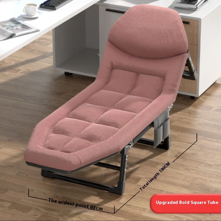 The chaise lounge features a simple three-fold design, allowing it to be stored effortlessly in just 10 seconds. Its right-angle, non-slip foot pads stabilize the bed, ensuring even distribution of weight. Additionally, the noise-cancelling fabric and soundproof cloth design in the steel pipe parts minimize disturbances, providing a serene sleeping experience.