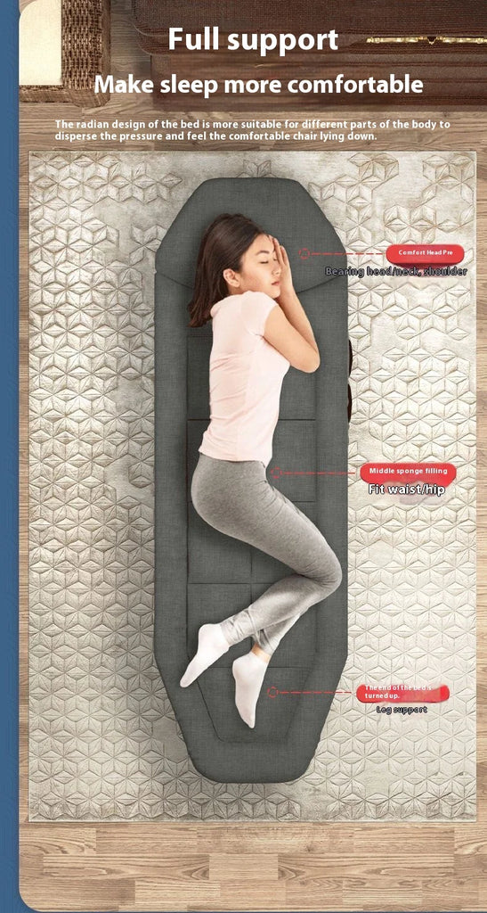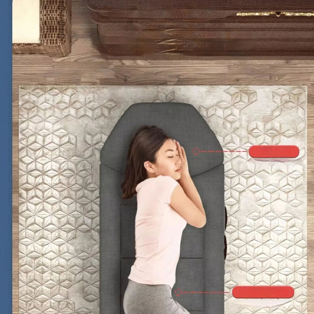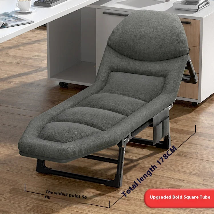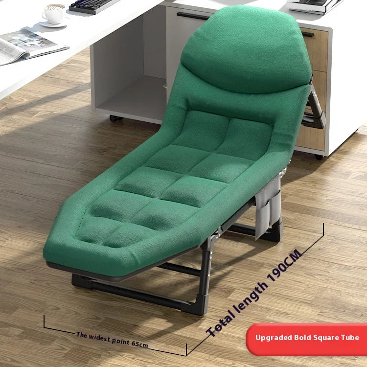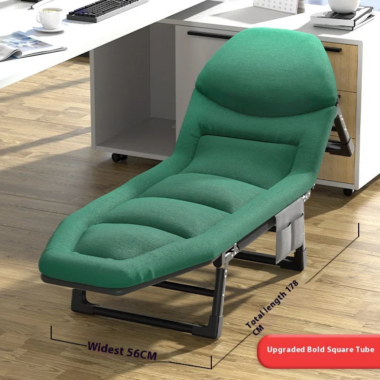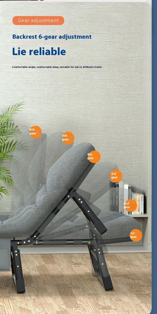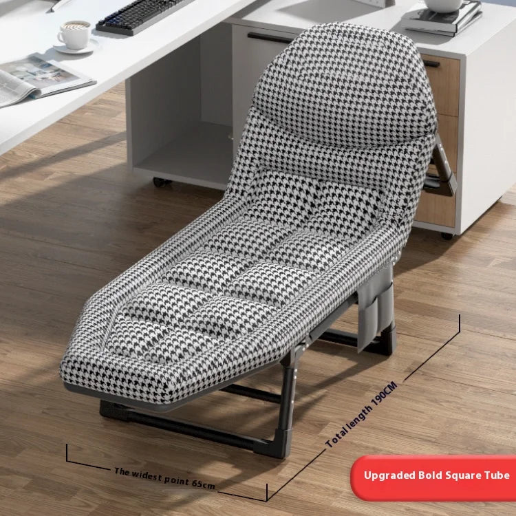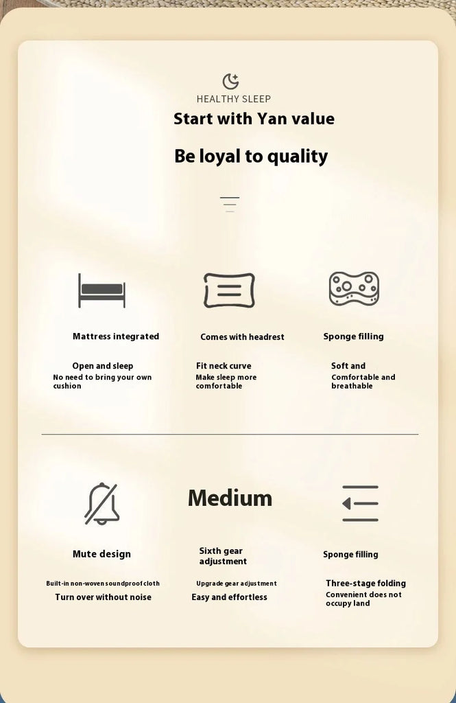 The chaise lounge features a simple three-fold design, allowing it to be stored effortlessly in just 10 seconds. Its right-angle, non-slip foot pads stabilize the bed, ensuring even distribution of weight. Additionally, the noise-cancelling fabric and soundproof cloth design in the steel pipe parts minimize disturbances, providing a serene sleeping experience.