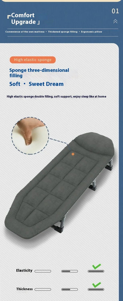 Adult Camping Bed with Cushion & Pillow, Foldable Rollaway Mattress, Portable Lounge Chair