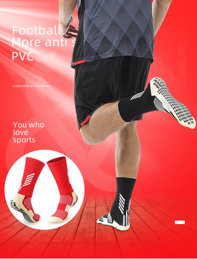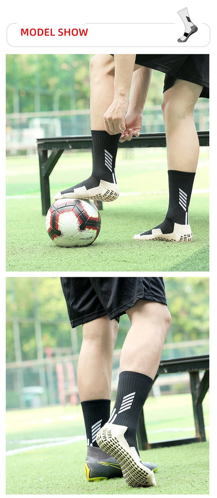 Anti-Slip Soccer Socks for Adults & Kids - Cotton Mid-Tube Grip Socks for Football, Hockey, Baseball - Sport Towel Bottom