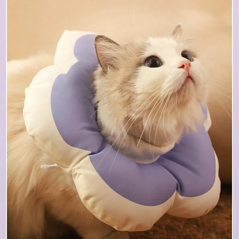 Floral Cat Recovery Cone, Soft Adjustable Cotton Collar for Post-Surgery Comfort & Protection