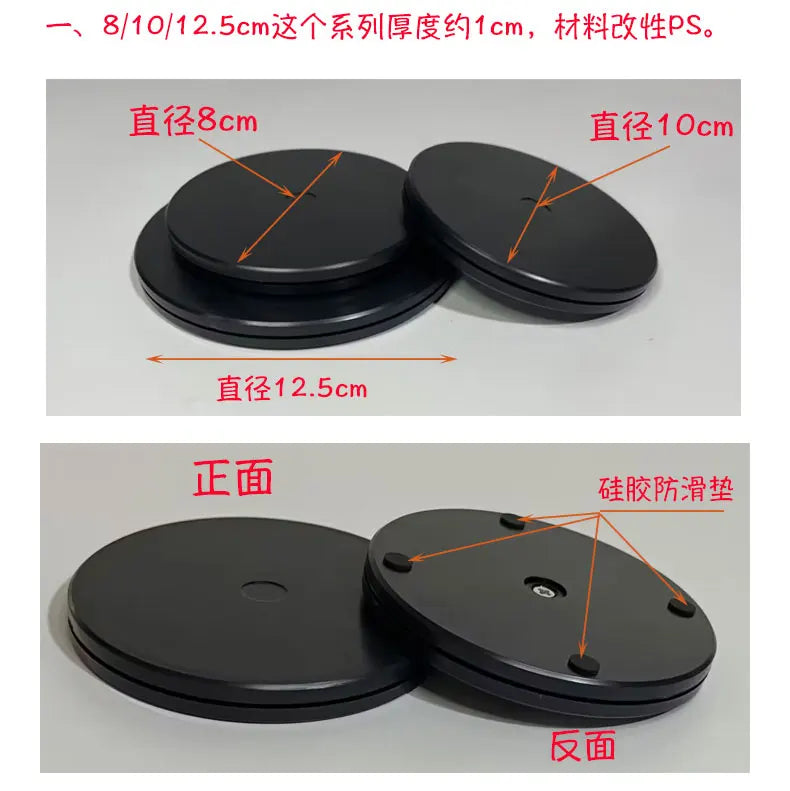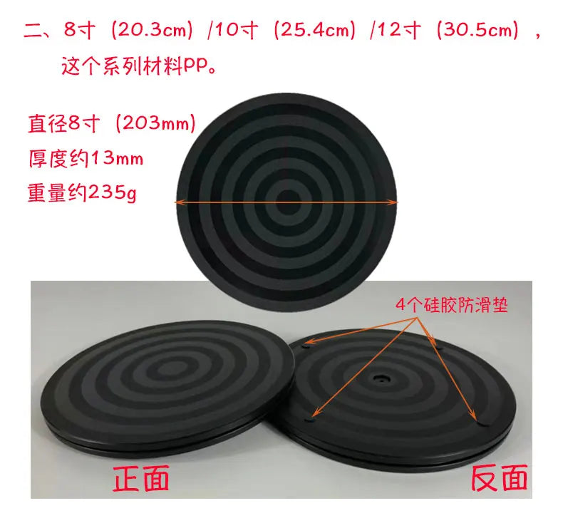 Anti-Skid Plastic Lazy Susan Turntable, 8-40cm Round Swivel Plate, Black