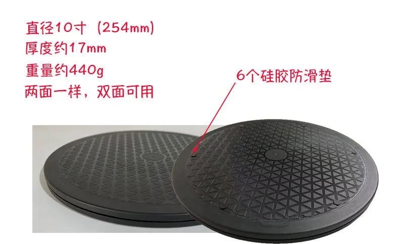 Enhance your living space with this versatile Lazy Susan Turntable, crafted for smooth rotation and durability. Made of strong ABS and PVC plastic, this turntable boasts a robust design with a 360-degree swivel base. Ideal for dining tables or as a TV swivel stand, it effortlessly supports loads over 70 kg without deformation, thanks to its solid steel ball bearings. The double-sided anti-skid tips ensure stability on both glass and wood surfaces. Available in standard sizes with a sleek, smooth finish, it offers quiet and reliable operation, perfect for home or hotel use.