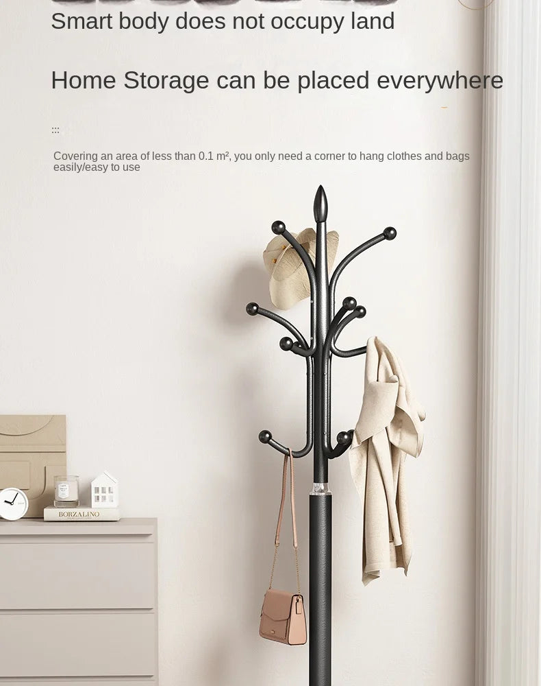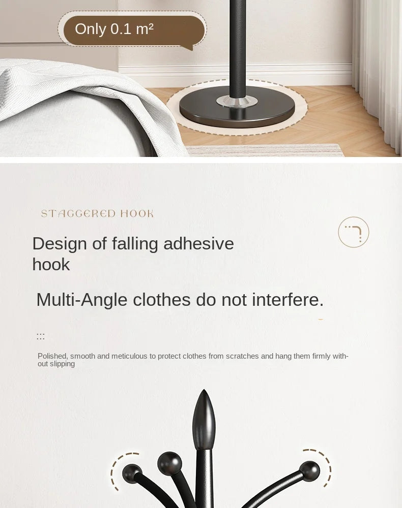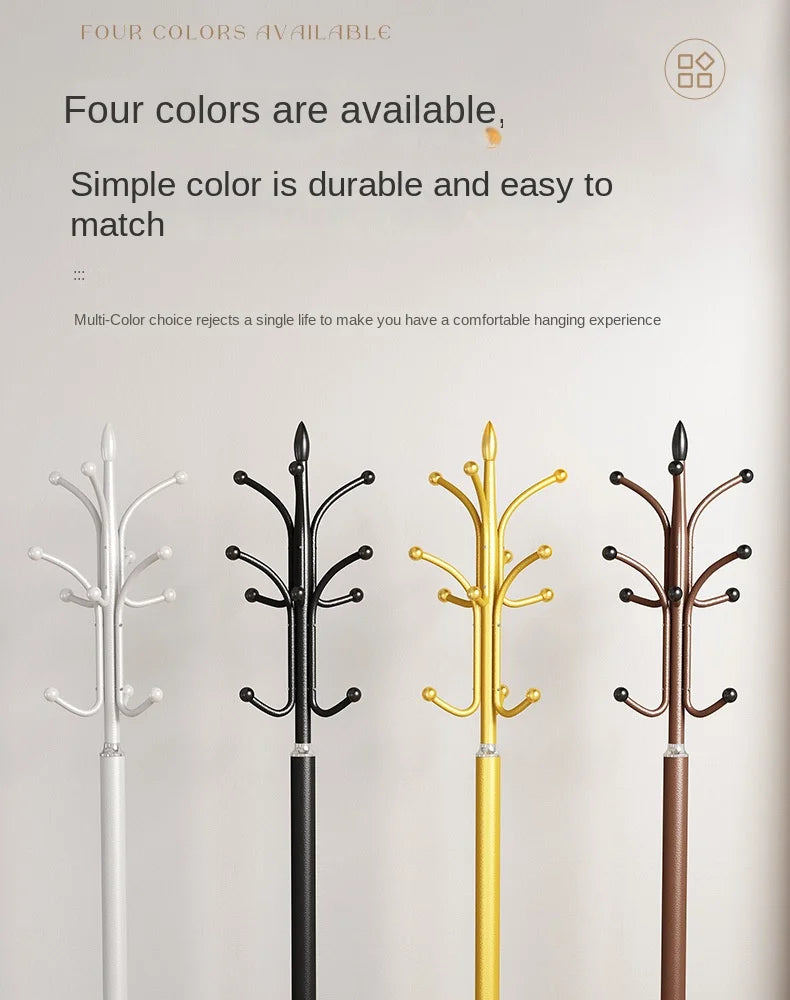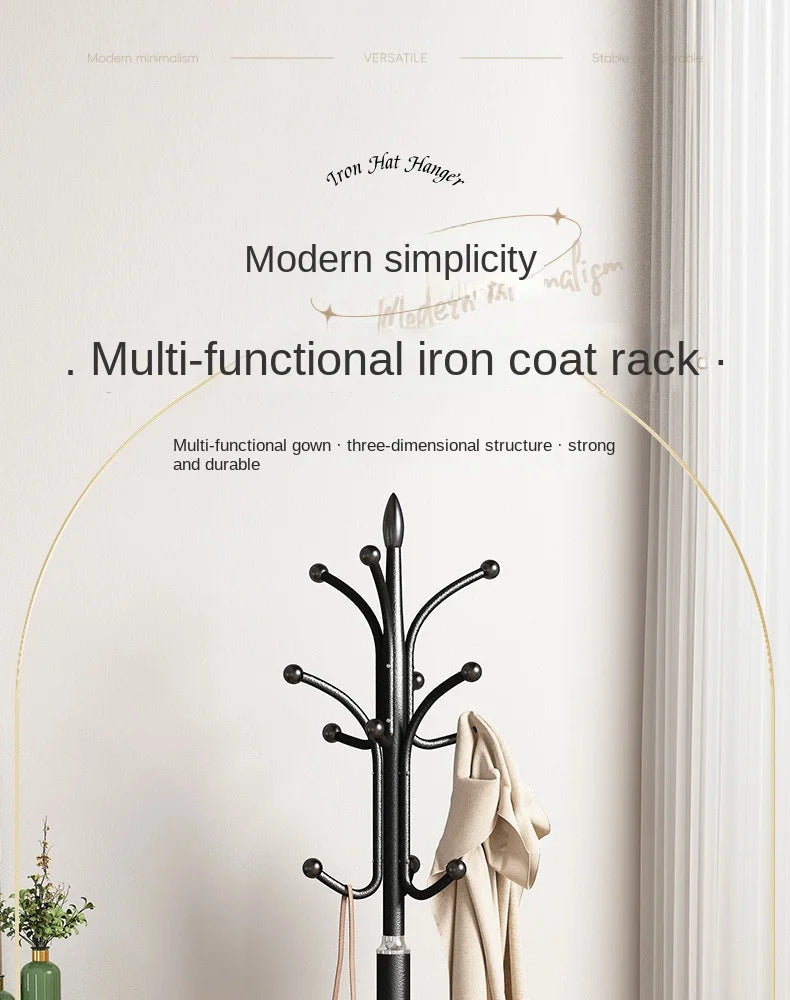 Floor Standing Iron Hat and Coat Rack, Minimalist Vertical Clothes Hanger for Bedroom and Living Room Storage