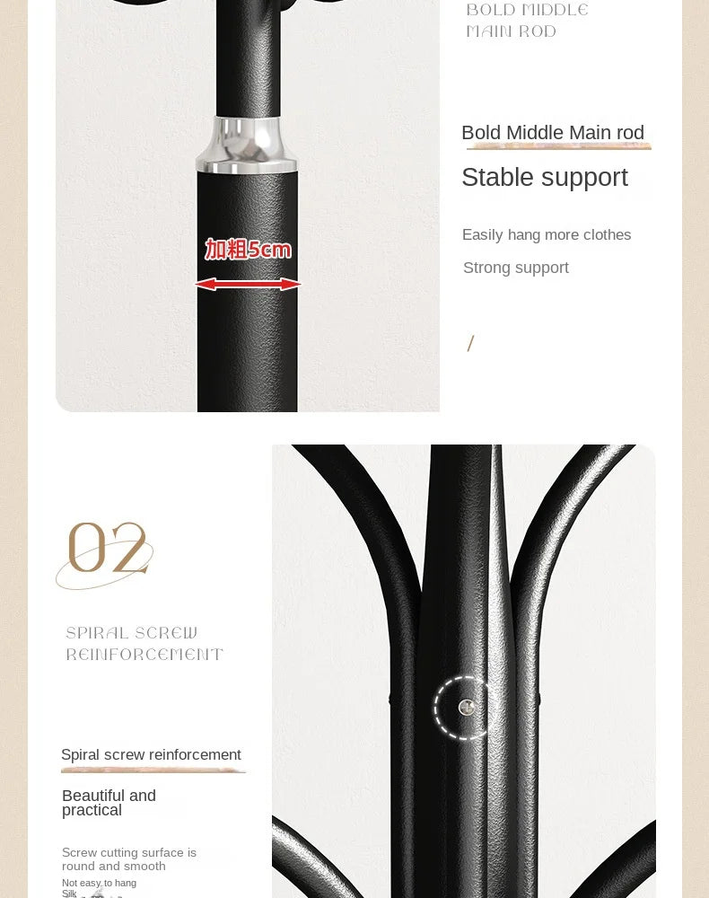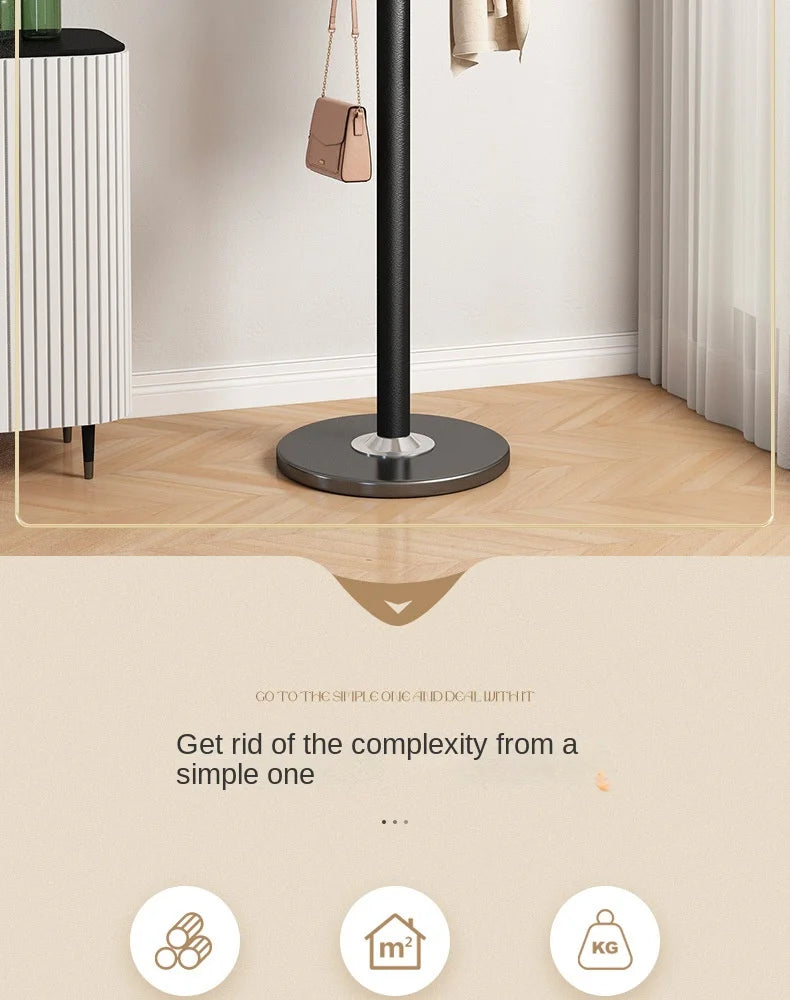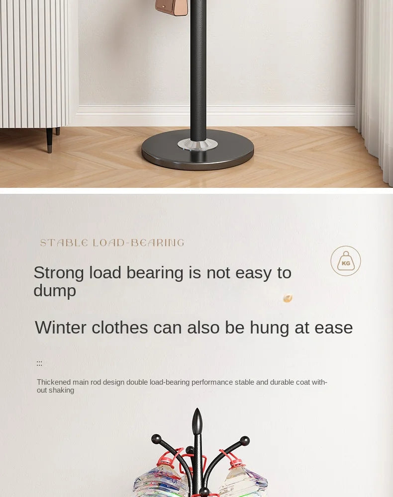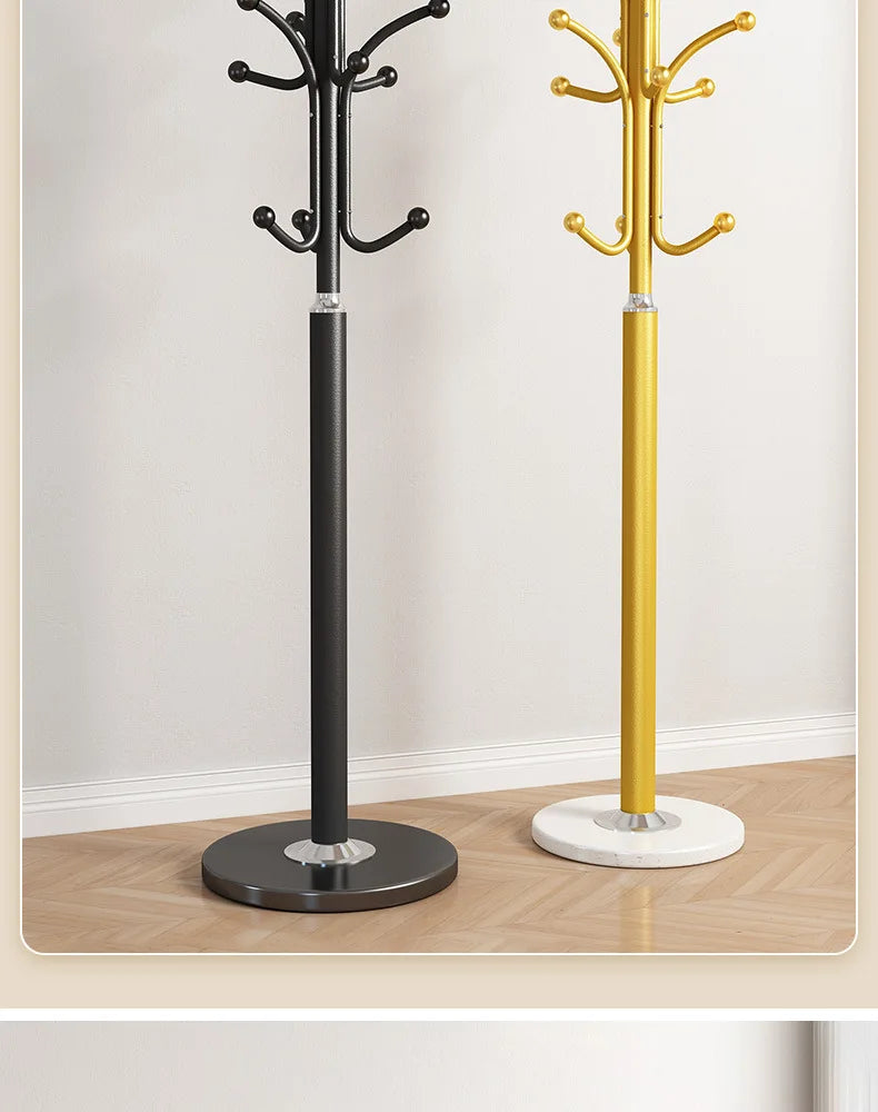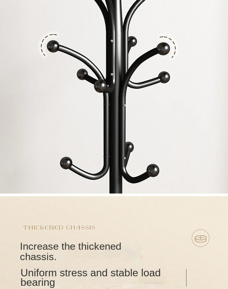 Floor Standing Iron Hat and Coat Rack, Minimalist Vertical Clothes Hanger for Bedroom and Living Room Storage