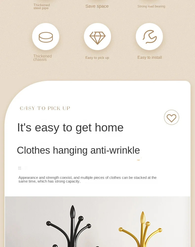 Introducing a sleek and modern coat rack designed to enhance your living space. Crafted from durable stainless steel, this sturdy piece offers both style and functionality. With an easy assembly process, it's perfect for any home furniture collection. The rack features over 10 hooks, providing ample storage for coats, hats, and accessories. This versatile piece serves as both a practical storage solution and an elegant addition to your entryway or living room.