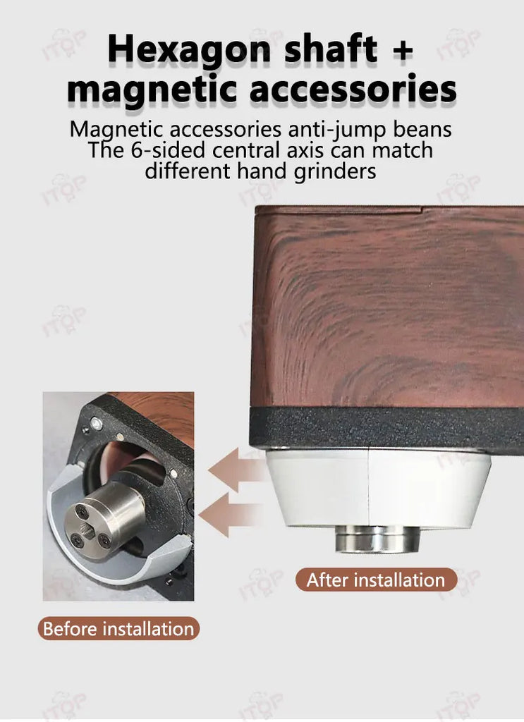- Built-in Convenience: Hexagon shaft with magnetic accessories to prevent bean jumping.