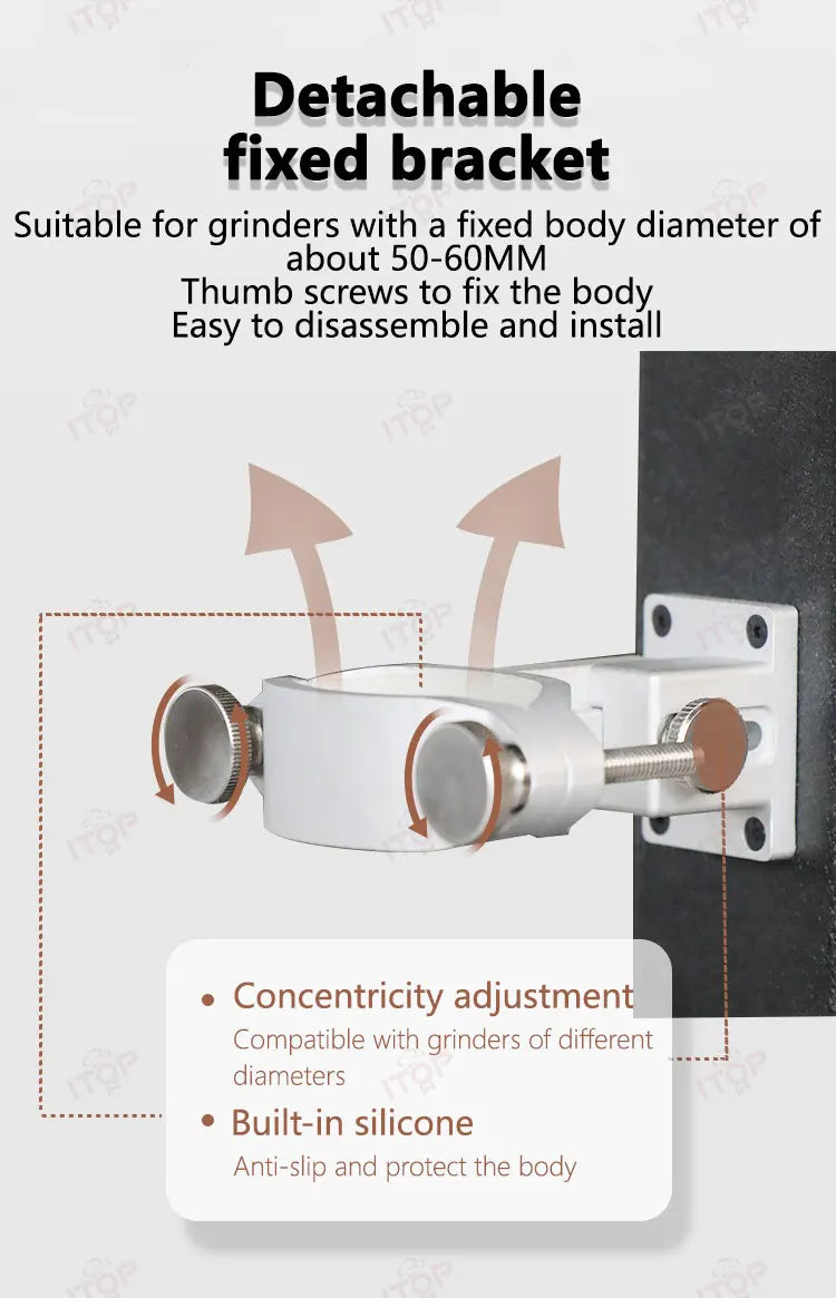 - Compatibility: Supports most hand grinders; fits grinders with a 50-60MM diameter.