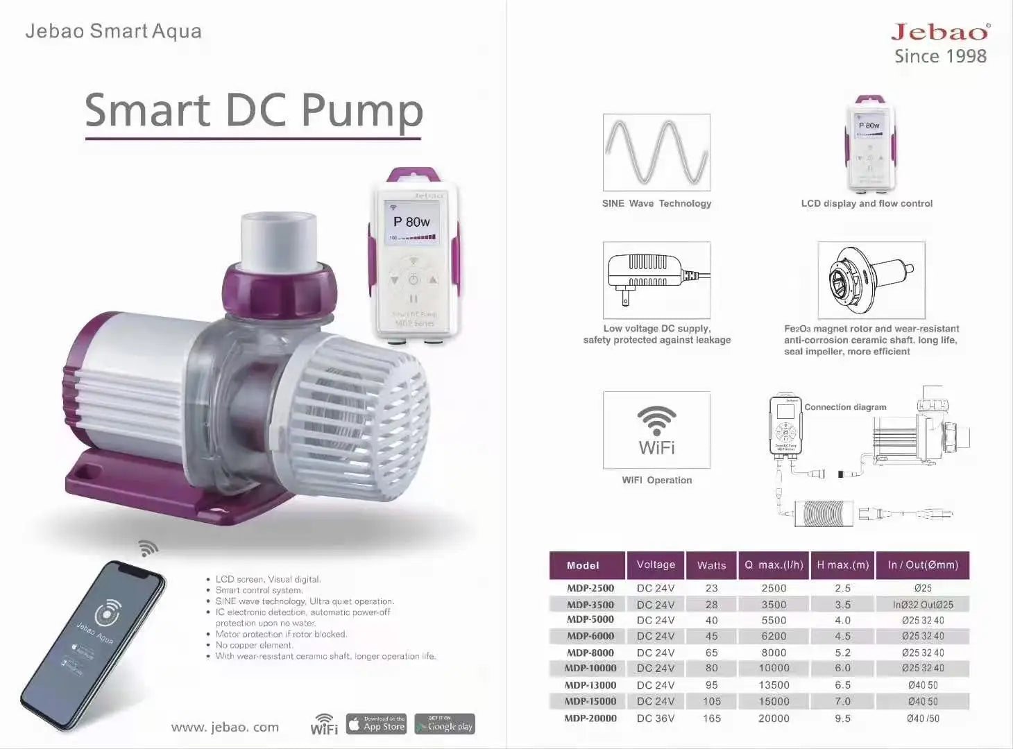 Adjustable Flow Aquarium Pump with WiFi & LCD Display 2500-20000 MDP Series