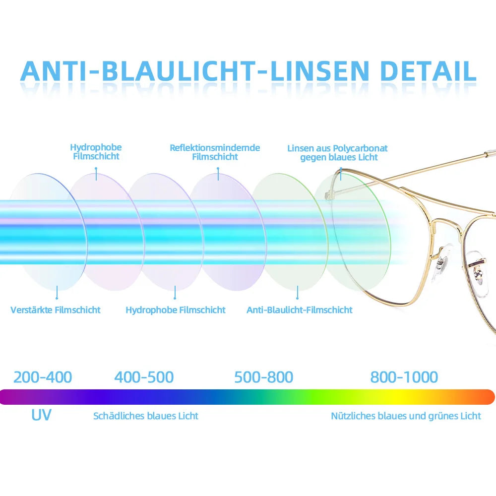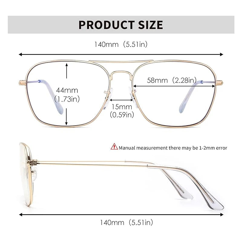 Aviator Blue Light Blocking Glasses, Square Frame, Anti-Glare Eyewear for Men and Women