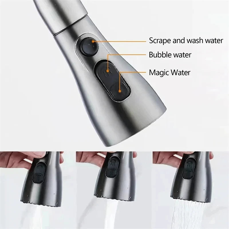 The faucet’s extended pull-down design provides comprehensive sink coverage, making all your cleaning tasks effortless. Its innovative pause feature allows you to stop water flow instantly during various tasks, preventing splashes and keeping your kitchen tidy.