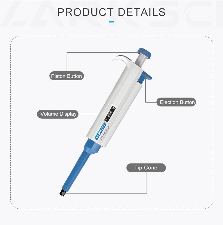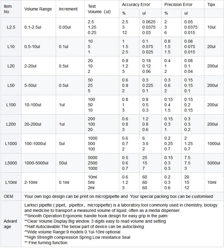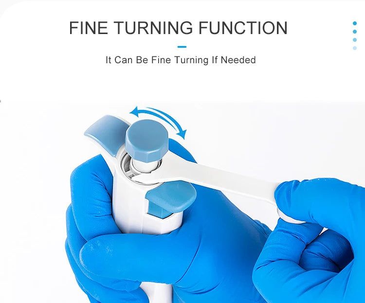 Introducing our precision pipette, designed with user comfort and accuracy in mind. Ideal for both beginners and seasoned professionals, this tool boasts a lightweight, ergonomic design that minimizes strain during prolonged use. The clear window display allows you to easily read and set volumes, ranging from 0.1μl to 10ml, making it versatile for various lab applications. Each pipette is meticulously calibrated in accordance with ISO8655 standards and comes with an individual test certificate. For added convenience, the lower part can be autoclaved, ensuring ease of maintenance and sterilization.