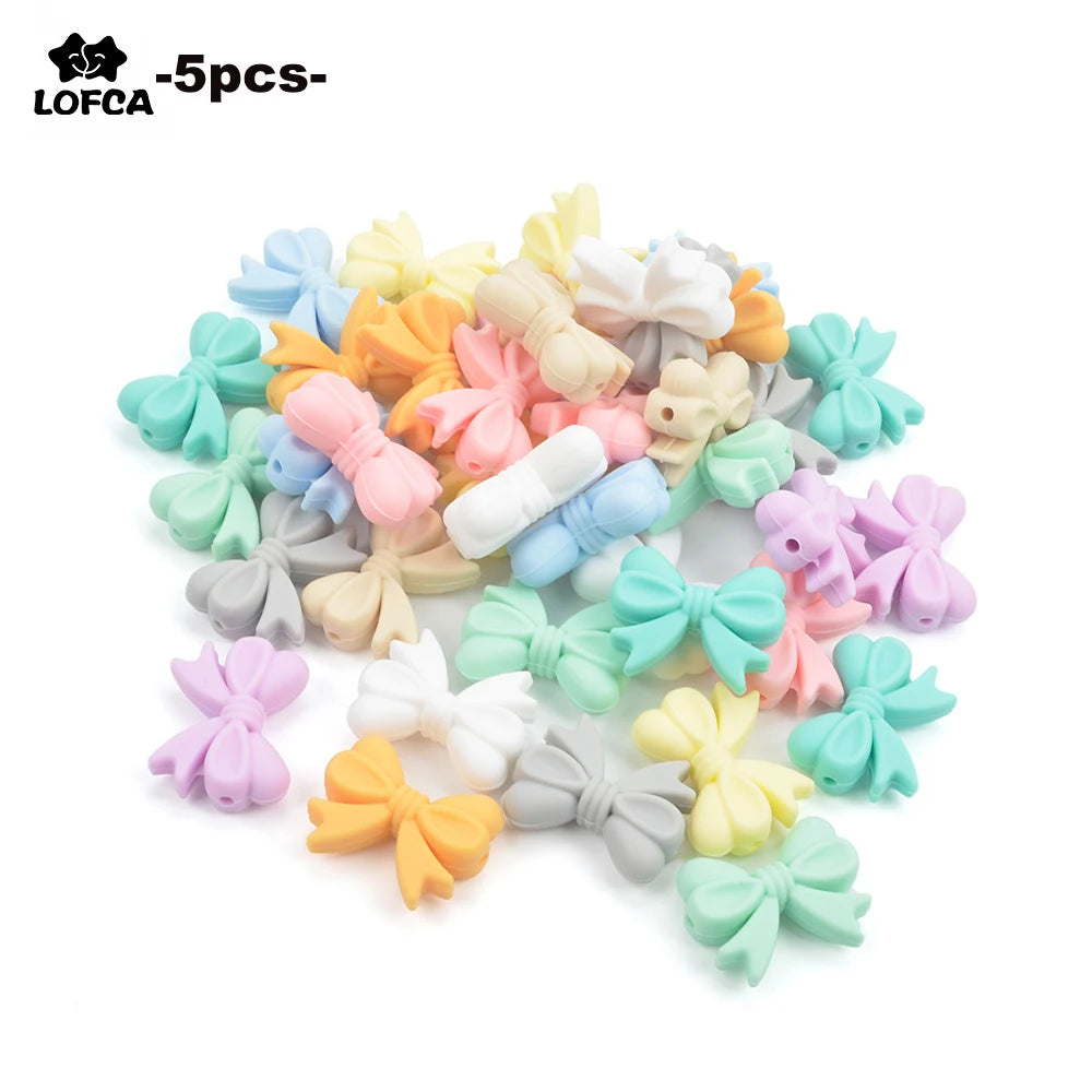 5pcs Bowknot Silicone Teething Beads DIY Set, Food Grade Pacifier & Teether Holder Accessories