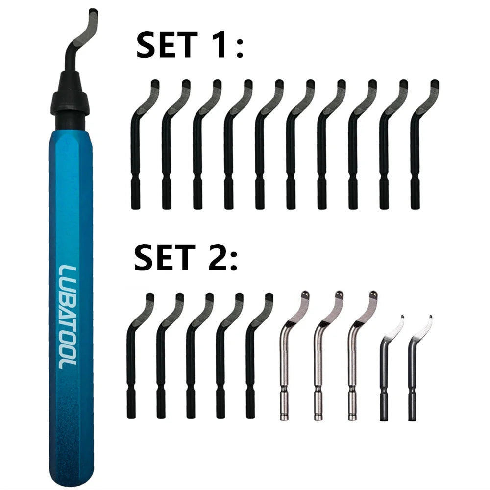 Deburring Tool Set 11 HSS Blades 360° Rotary Head for Metal, Resin, Plastic, 3D Printing, Wood