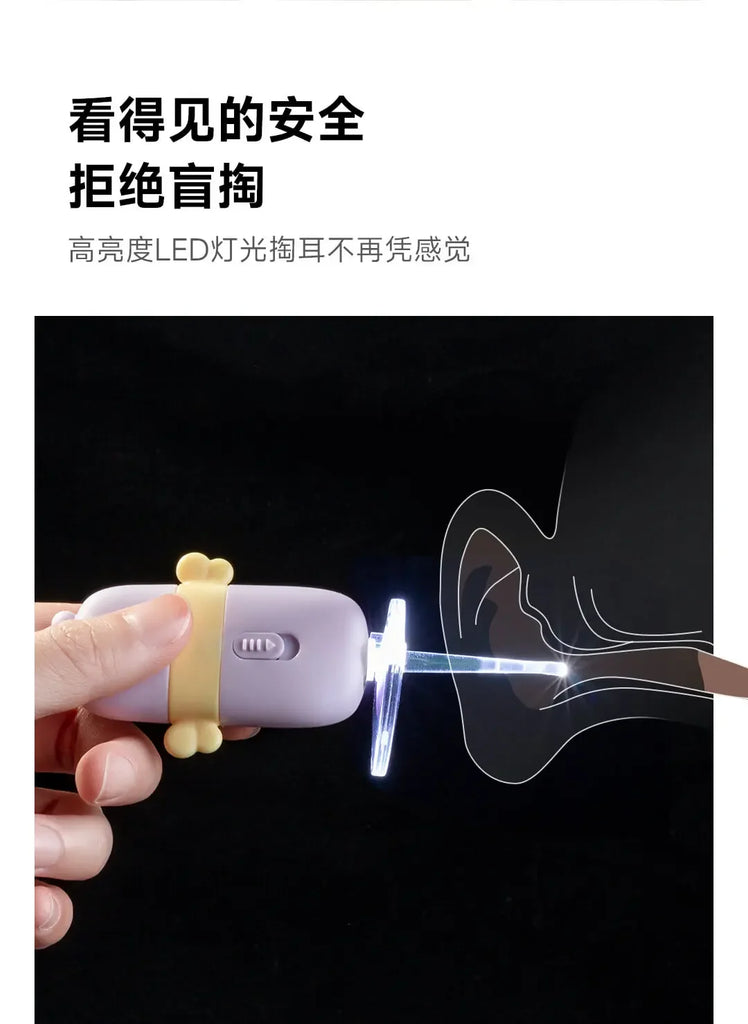 Ensure safe and effective ear care for your family with this innovative earwax cleaning tool. Designed for gentle cleaning, the device features a glowing tip that illuminates the ear canal, allowing for precise and safe wax removal. Equipped with a magnifying glass, this tool makes it easier to clean without causing irritation, making it suitable for all ages, especially children.