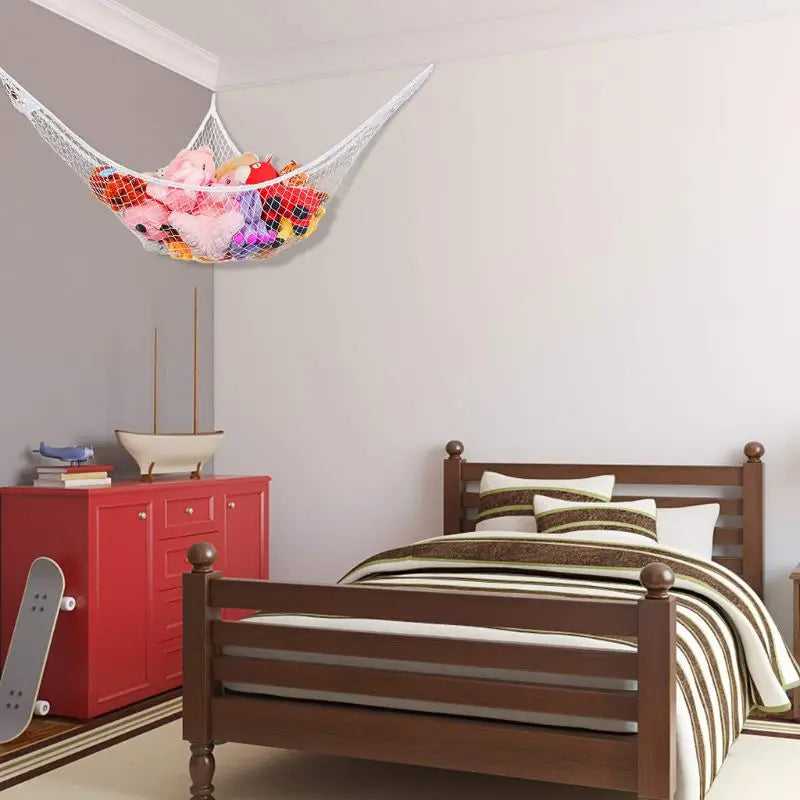 Transform your child's room into an organized haven with this versatile Mesh Net Toy Hammock. Designed to efficiently store stuffed animals, toys, and even sports equipment, this durable polyester hammock is perfect for maximizing space in bedrooms, playrooms, and more. Its adaptable design fits snugly into most corners, making it an ideal choice for the kitchen, bathroom, or balcony as well.