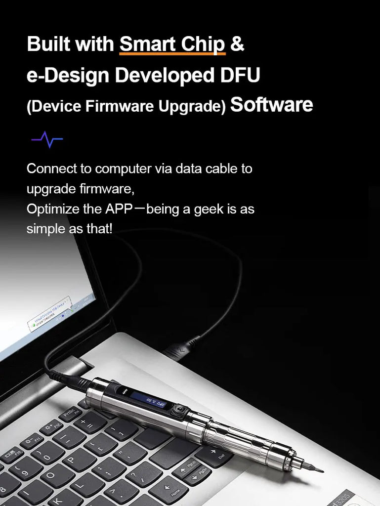Additional features include a self-integrated hand mode for manual tightening or loosening of screws, an added SET button for quick menu adjustments and combination unlocking, and a firmware upgrade function via e-Design's DFU software for continual optimization.