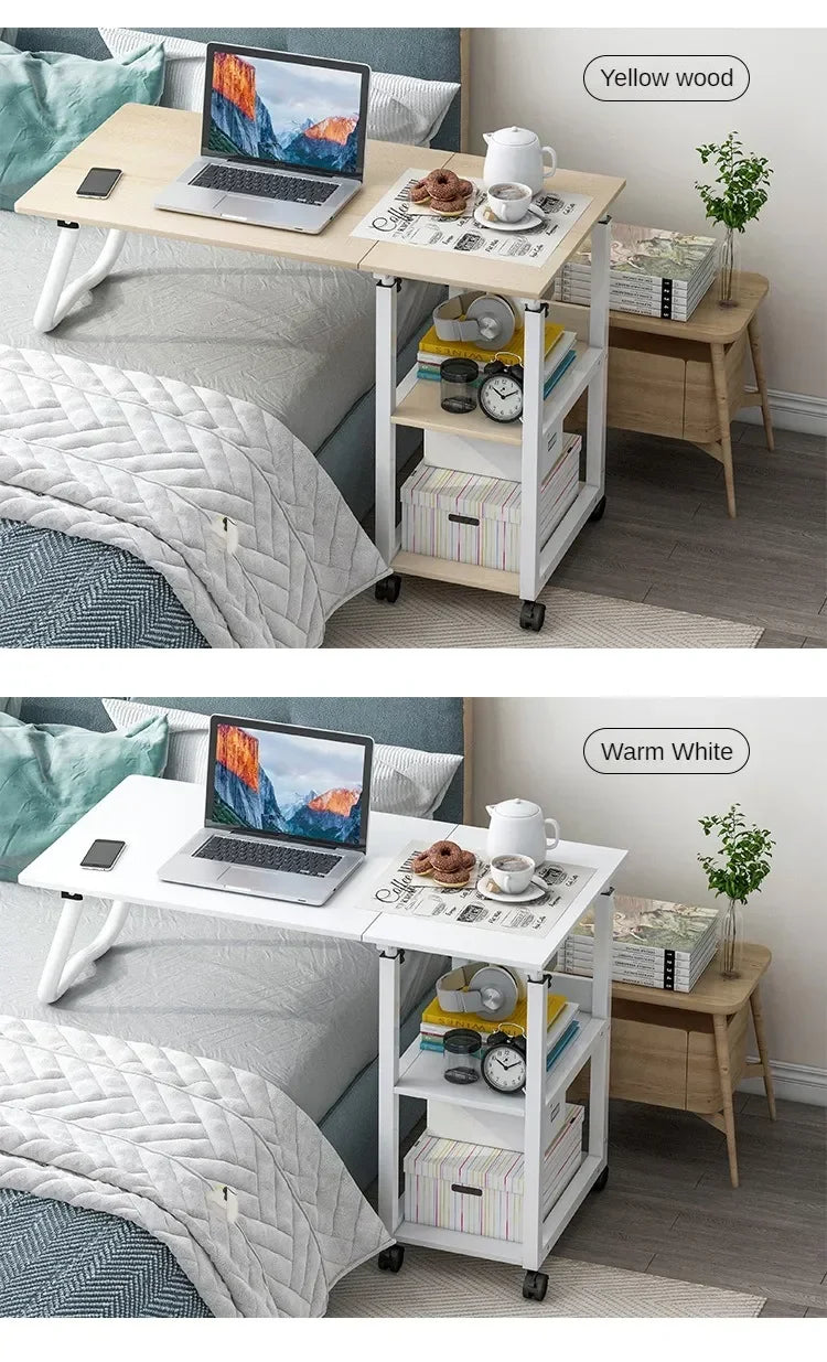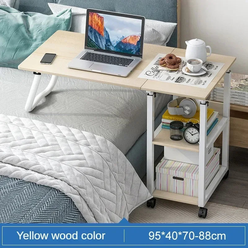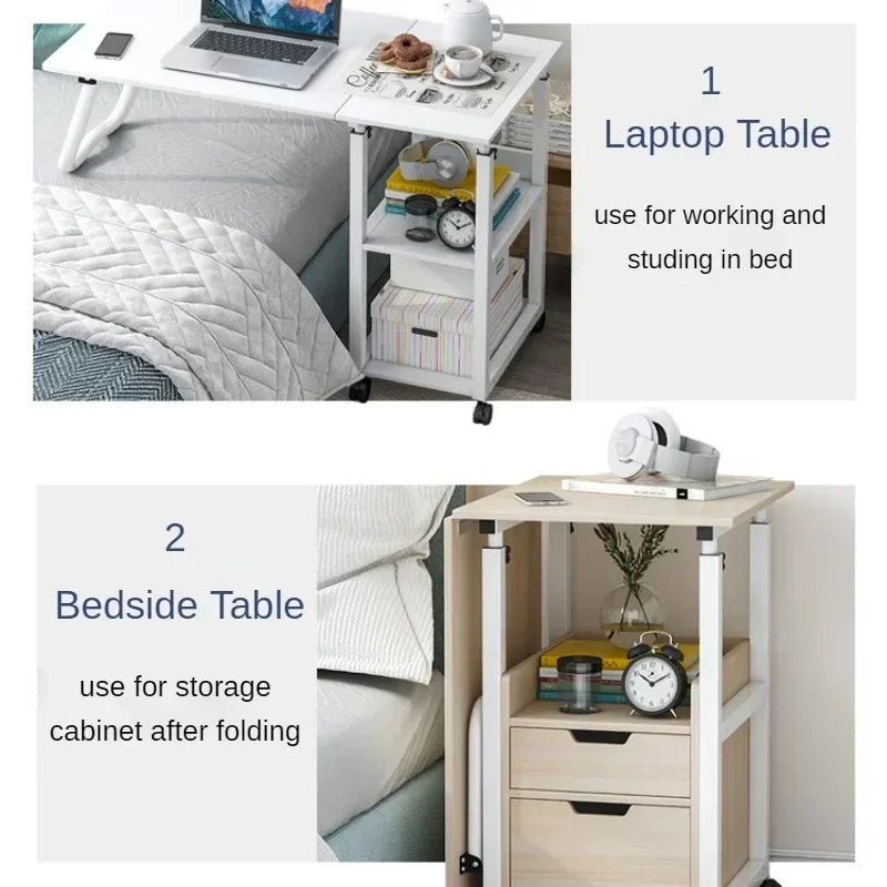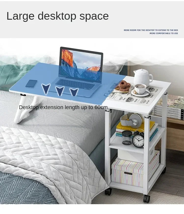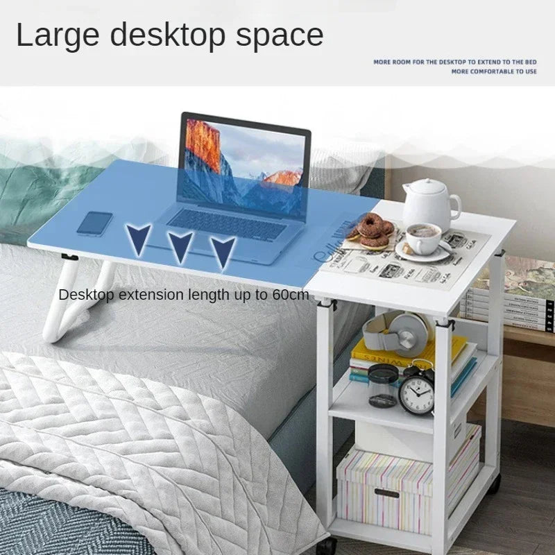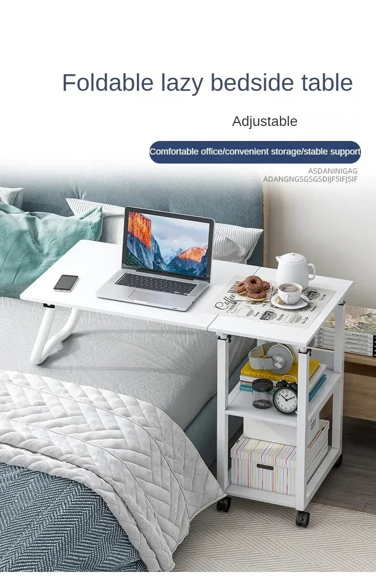 Foldable Movable Bedside Laptop Table with Multi-Layer Storage, Adjustable Workstation Desk for Bed, Study, or Office