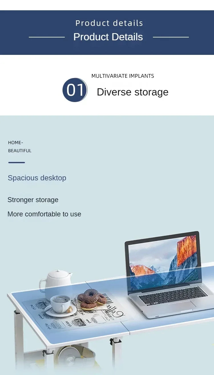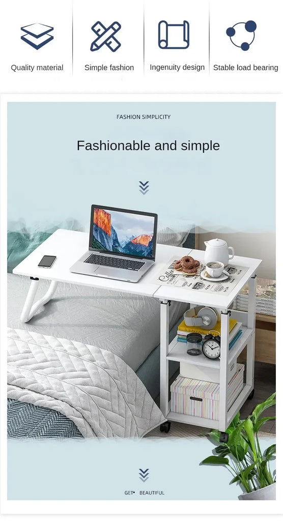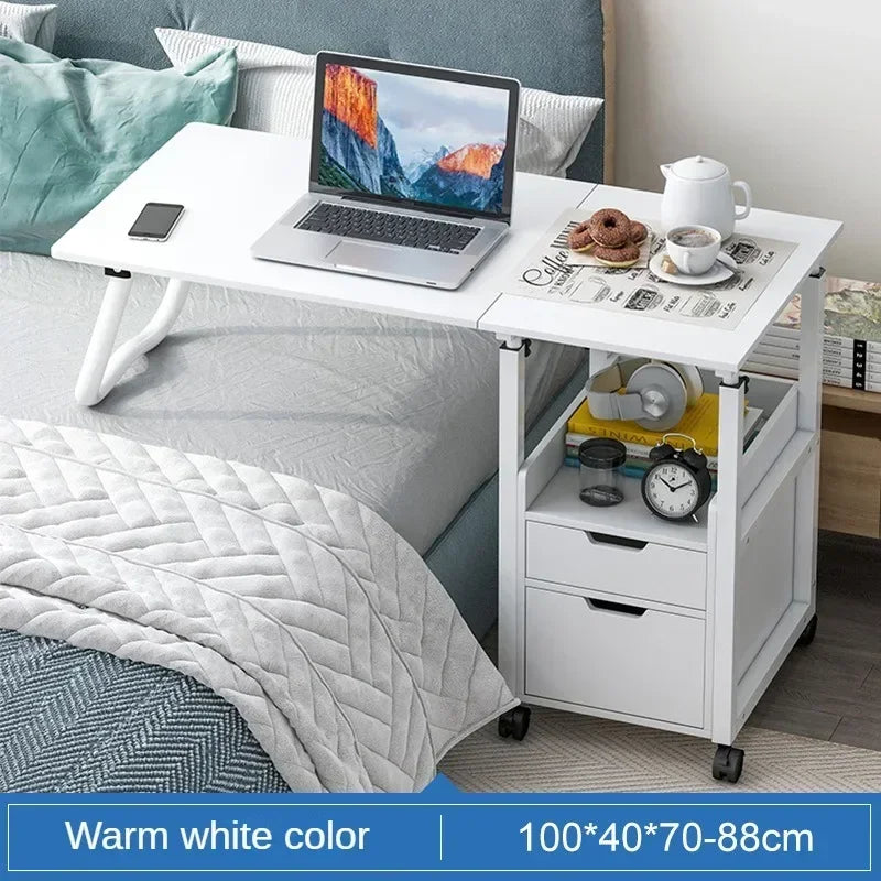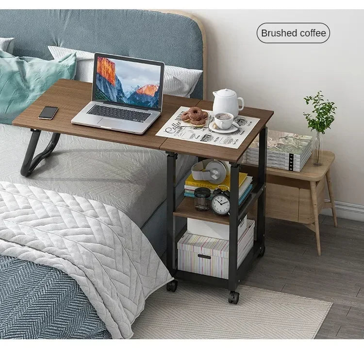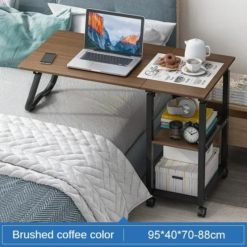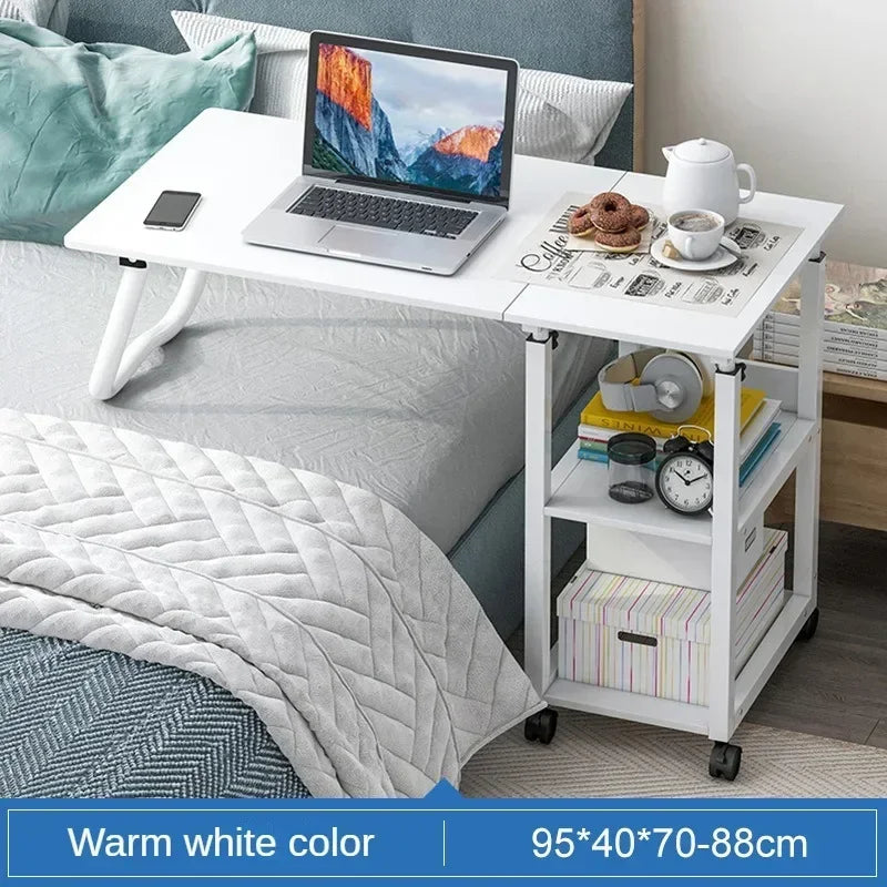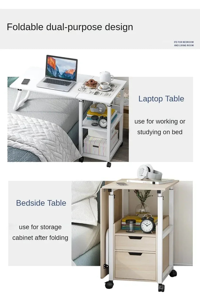 Foldable Movable Bedside Laptop Table with Multi-Layer Storage, Adjustable Workstation Desk for Bed, Study, or Office