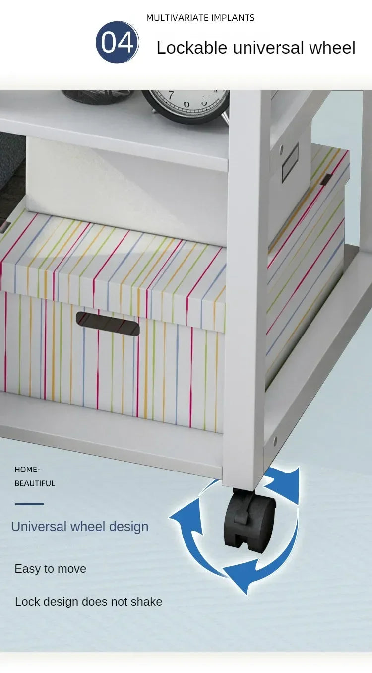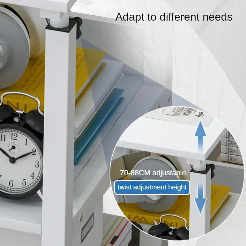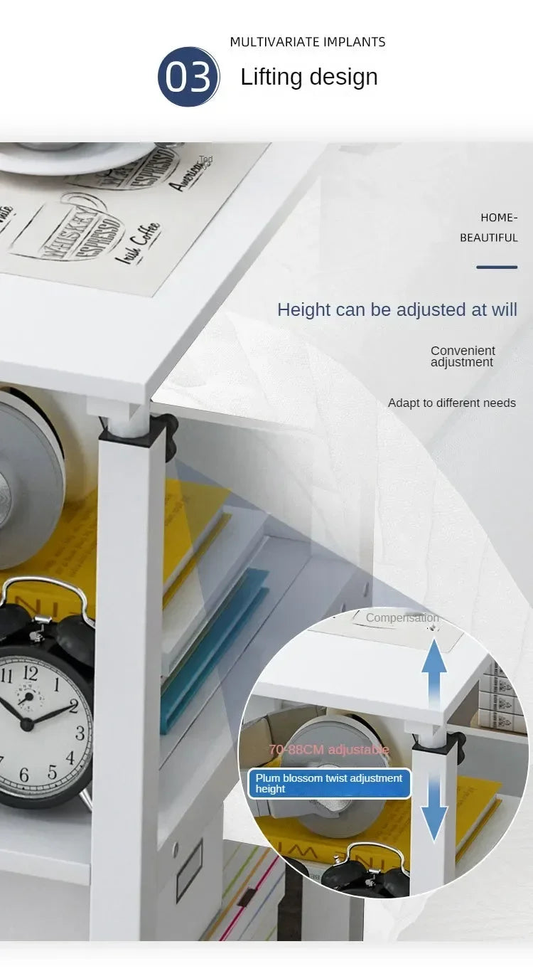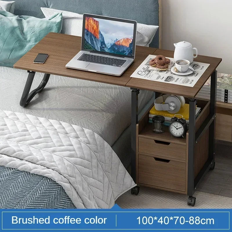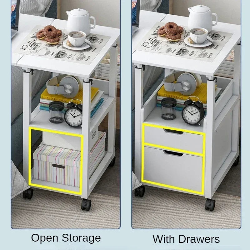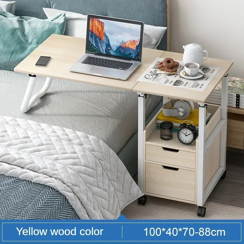 Foldable Movable Bedside Laptop Table with Multi-Layer Storage, Adjustable Workstation Desk for Bed, Study, or Office