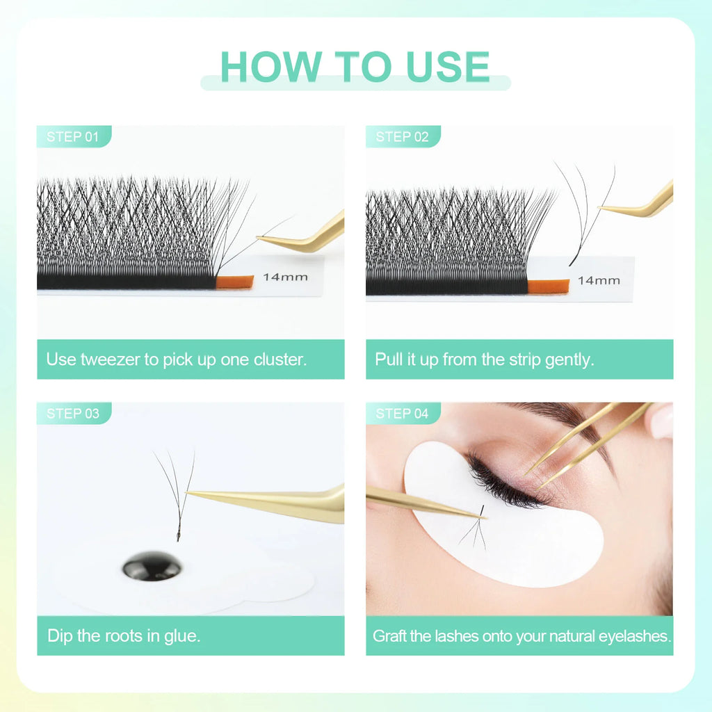 3D Faux Mink Lash Clusters, Natural Volume Eyelash Extensions, 0.05-0.10mm Thickness