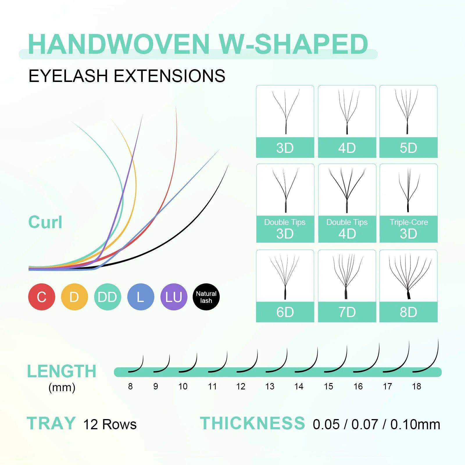 Discover the exquisite allure of our 3D W Shape Eyelash Extensions, designed to enhance and enchant naturally. Perfect for professional application, these synthetic extensions boast a sleek and polished look, crafted with meticulous attention to detail for a seamless fit. With lengths available from 1cm to 1.5cm, they elegantly elevate the beauty of your clients' eyes.