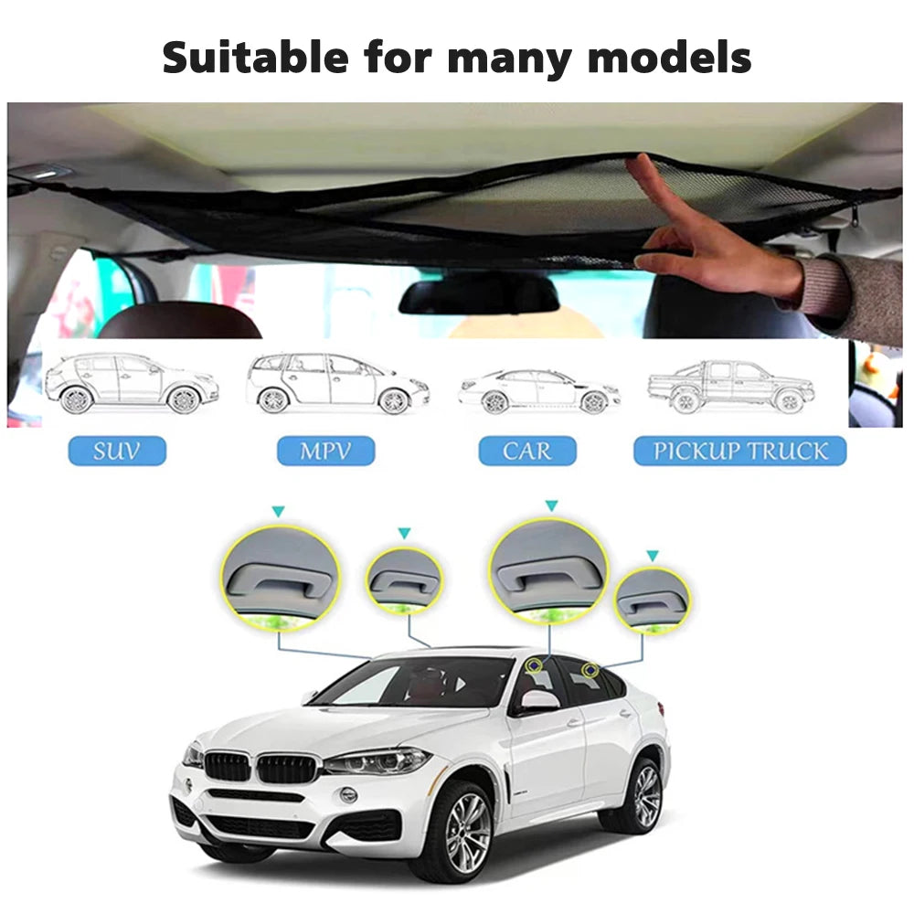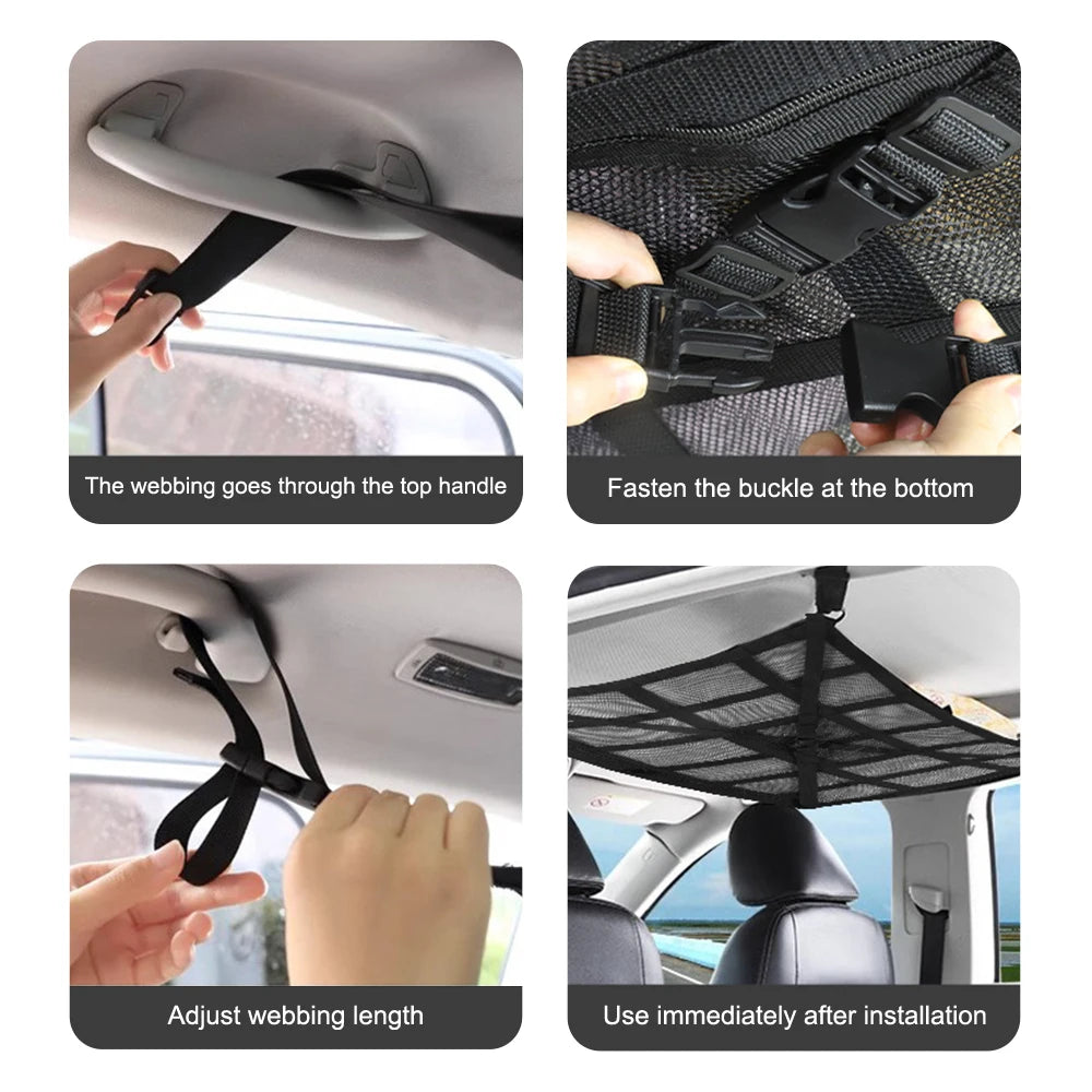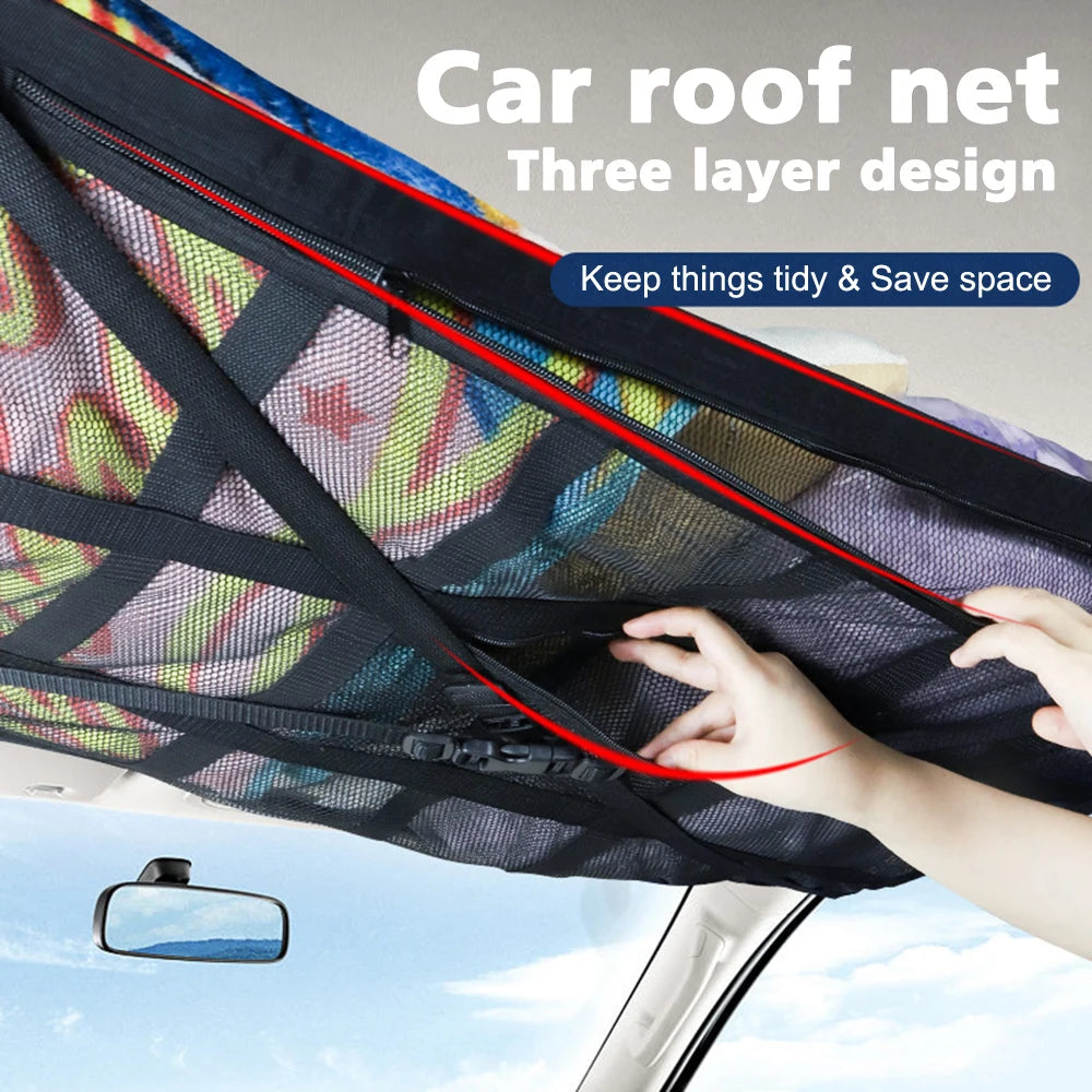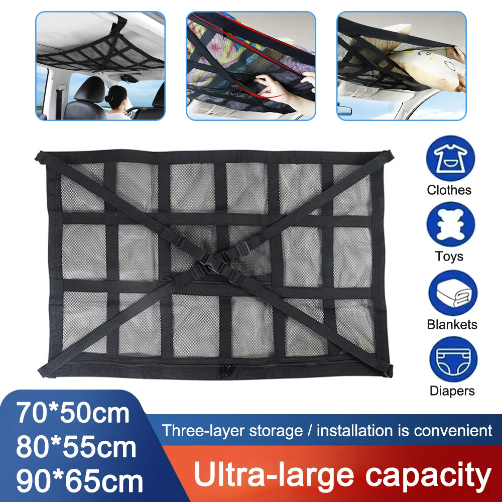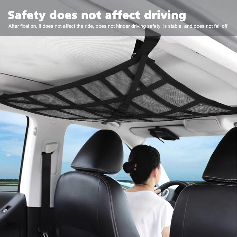 Car Ceiling Cargo Net Strong Load-Bearing Mesh Roof Storage Pocket Auto Organizer Accessories