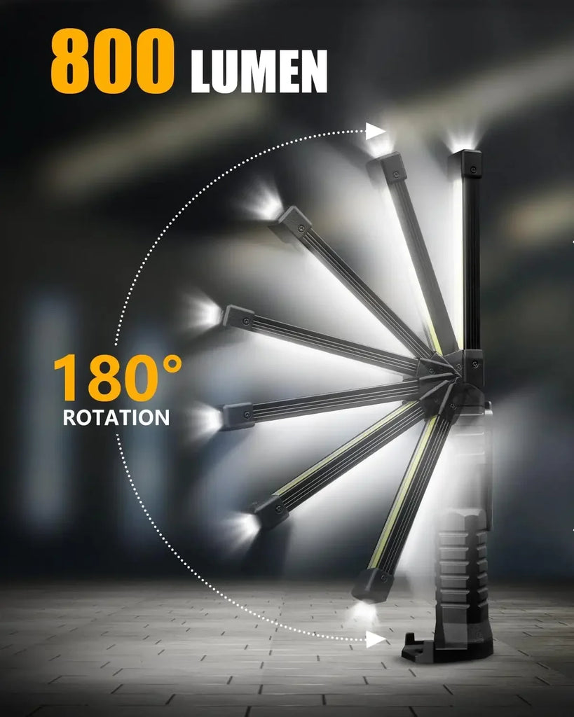 Foldable COB LED Work Light: USB Rechargeable, 7 Modes, Magnetic Base, Hanging Hook, Portable Torch Flashlight