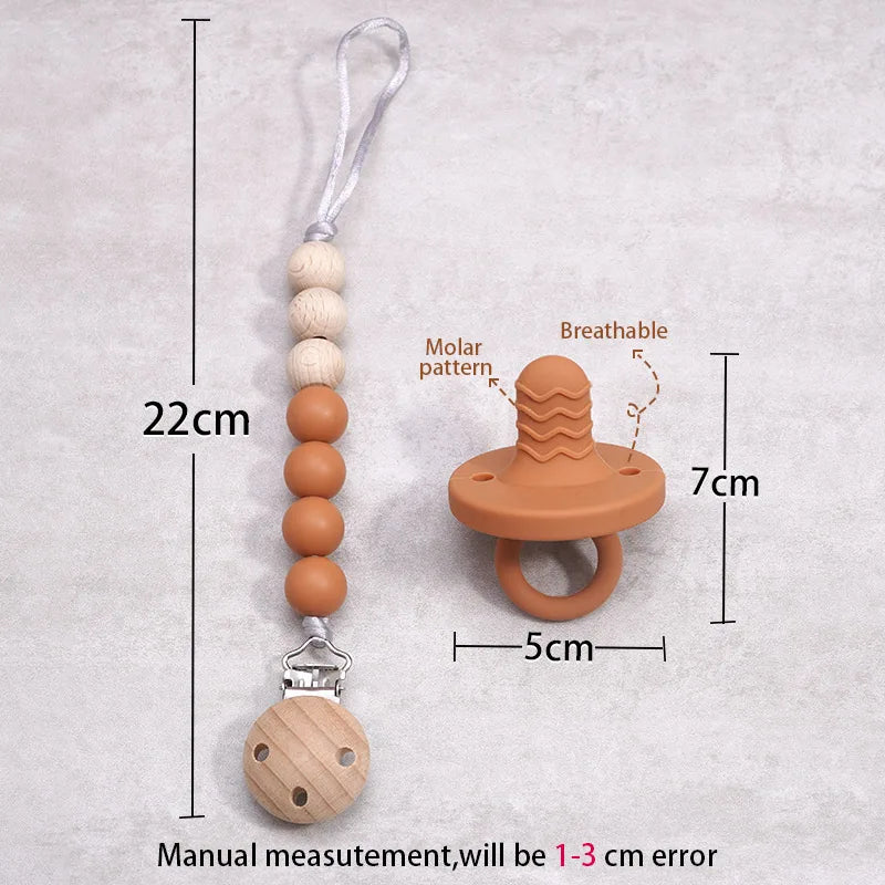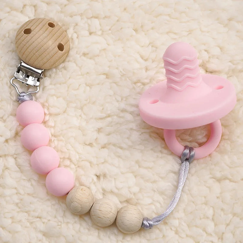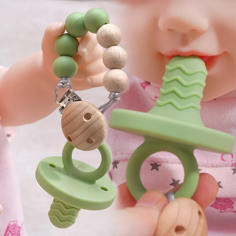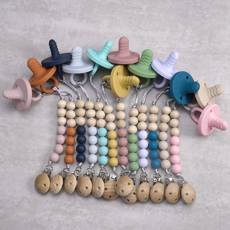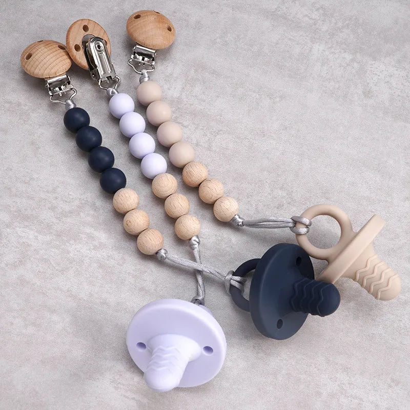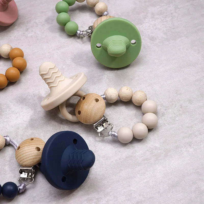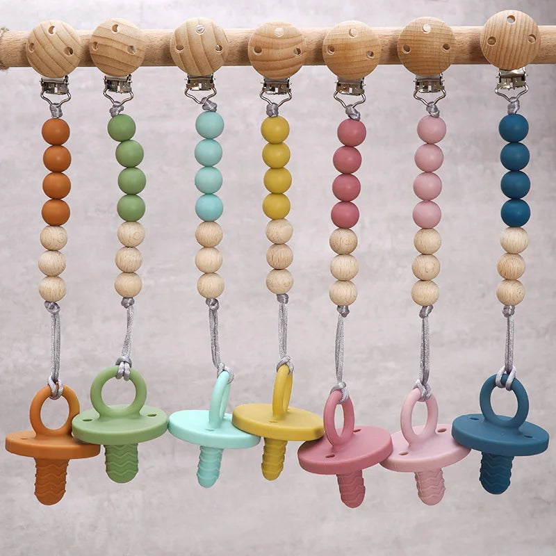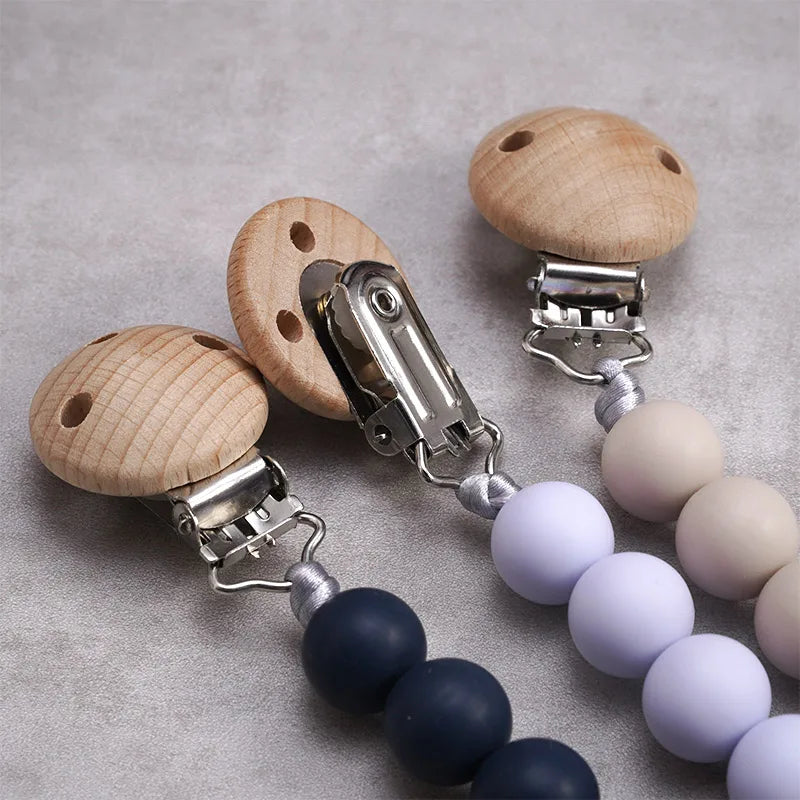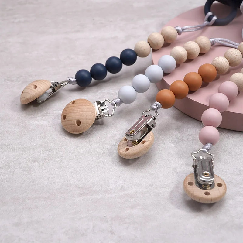 Custom Baby Pacifier Clip - Wooden, Silicone, Metal Chain - Newborn Feeding & Comfort Accessory