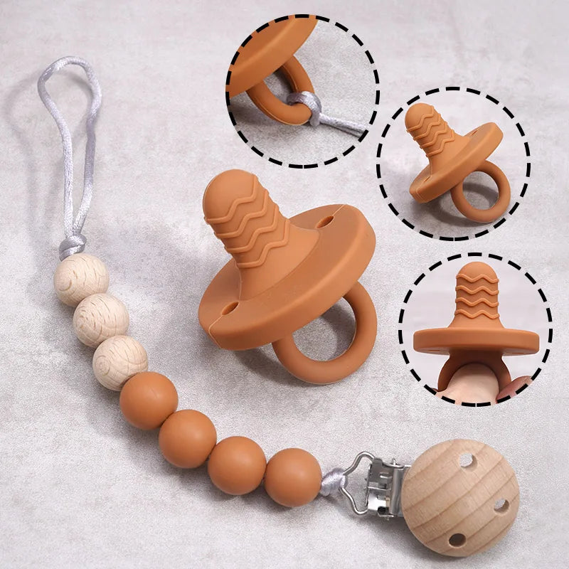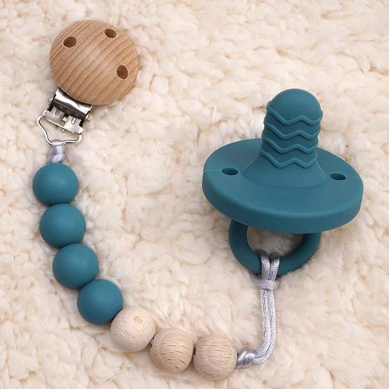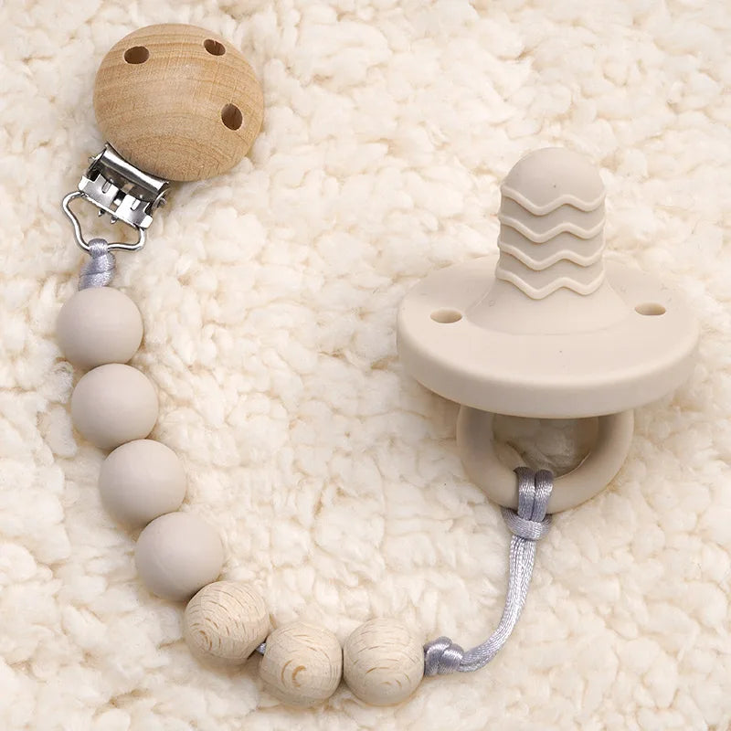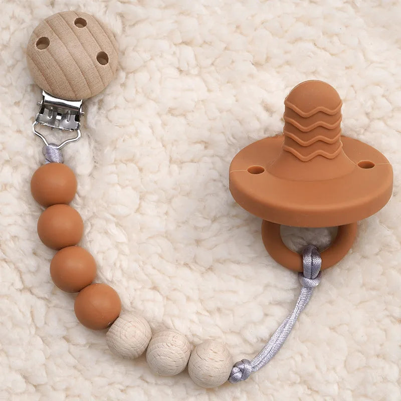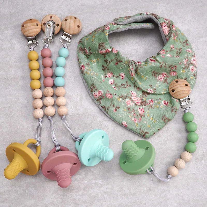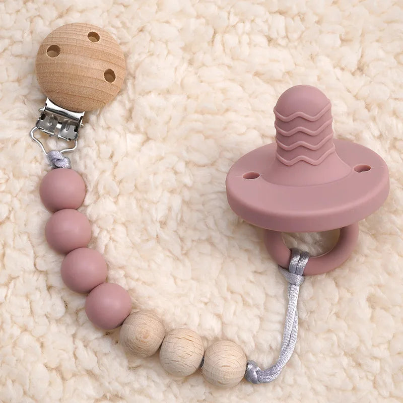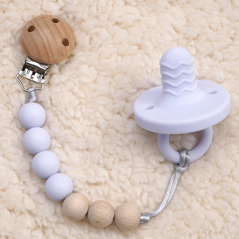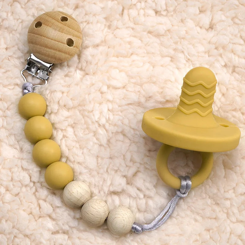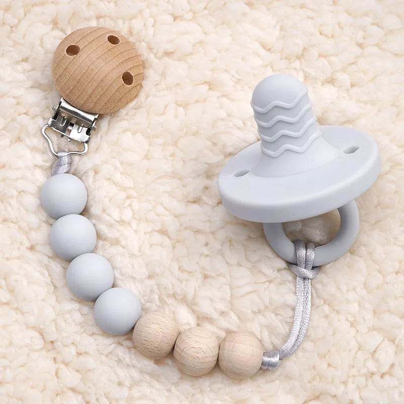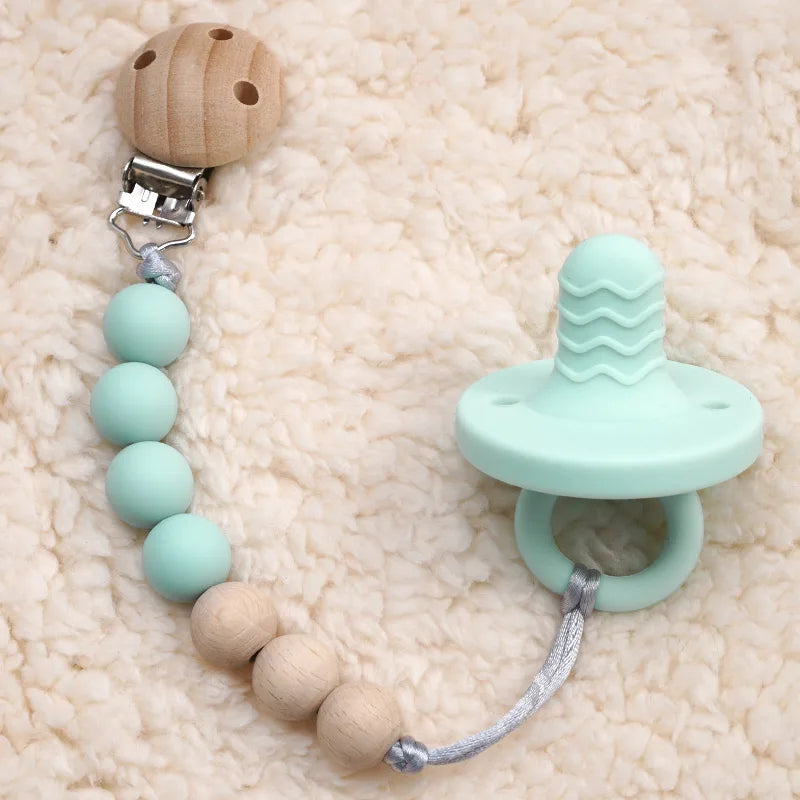 Custom Baby Pacifier Clip - Wooden, Silicone, Metal Chain - Newborn Feeding & Comfort Accessory