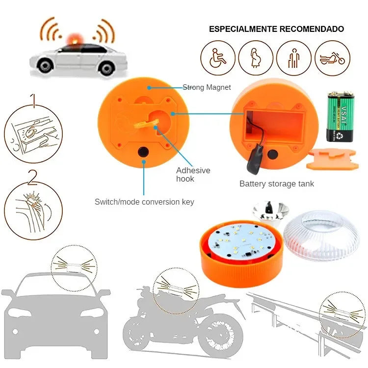 Emergency Magnetic Strobe Light Waterproof Portable Beacon - Orange/Blue/Red Flashlight for Car Safety