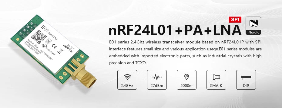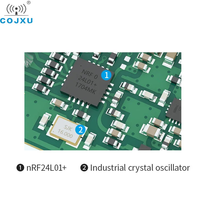 Enhance your wireless communication experience with this versatile module designed for VR devices, UAVs, IoT, and industrial control systems. This highly efficient unit offers a robust maximum transmitting power of 27 dBm, delivering a remarkable test distance of up to 5000 meters in open and clear air. Operating on a frequency range of 2400~2525 MHz, it utilizes a default frequency of 2.4 GHz for seamless connectivity.