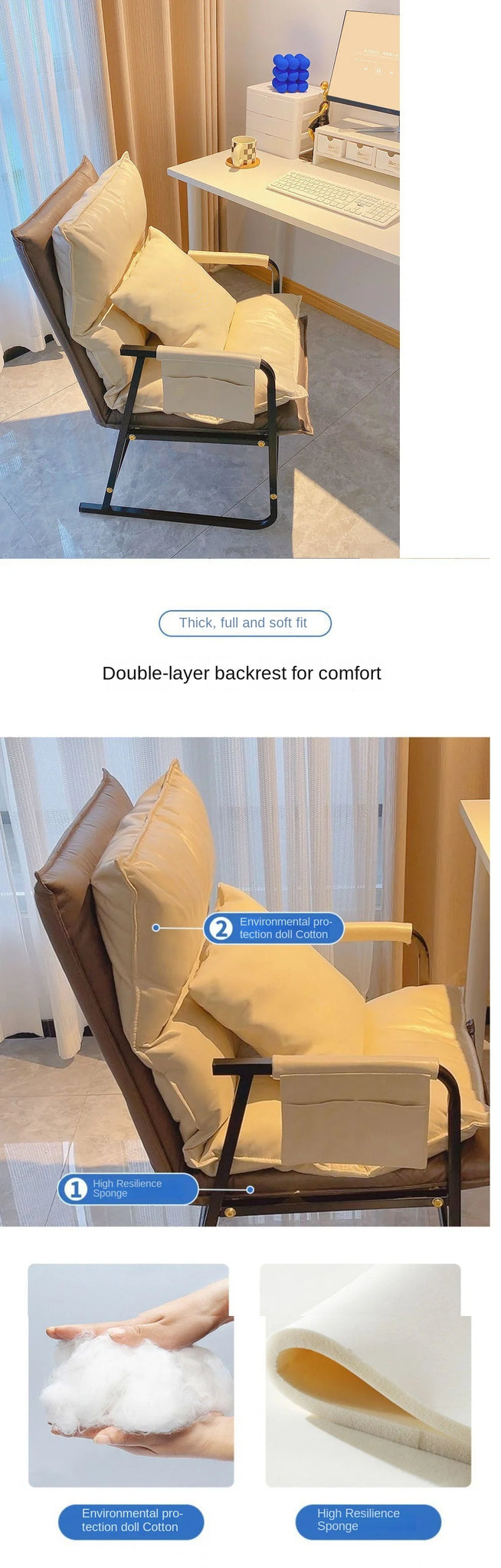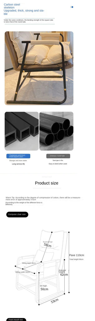 Foldable Recliner Computer Chair – Home Office, Study, Sofa with Comfortable Backrest