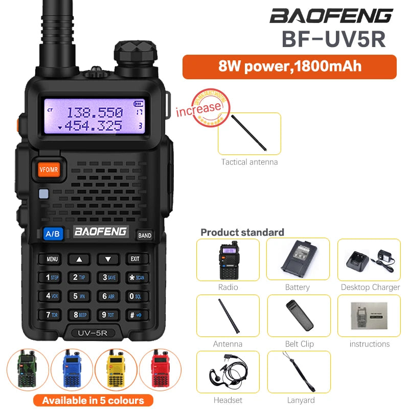 Introducing the BF-UV5R Dual-Band Walkie Talkie – the ultimate communication device for those seeking reliable and versatile connectivity. This portable walkie talkie is perfect for outdoor enthusiasts, security personnel, and anyone in need of quick, easy communication without relying on mobile networks.