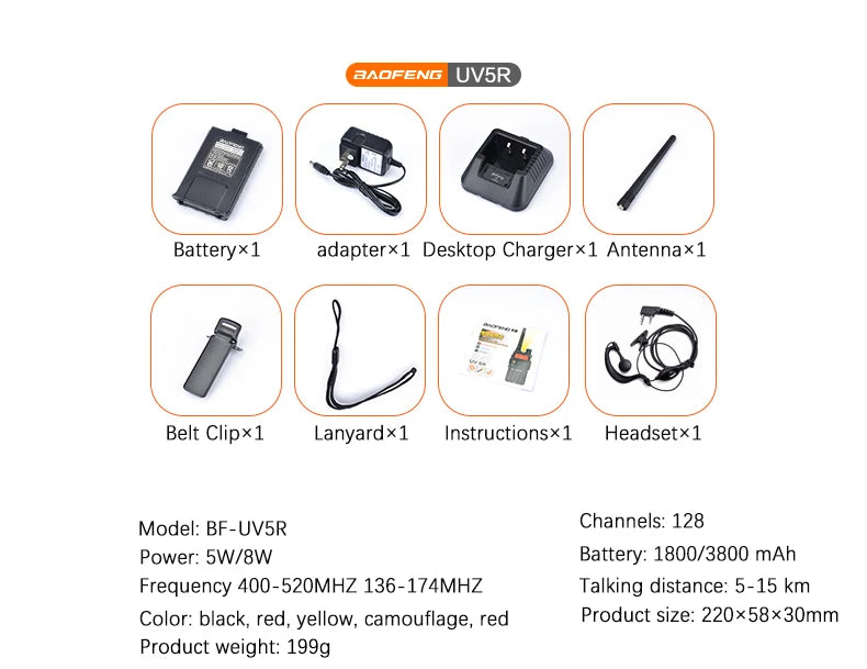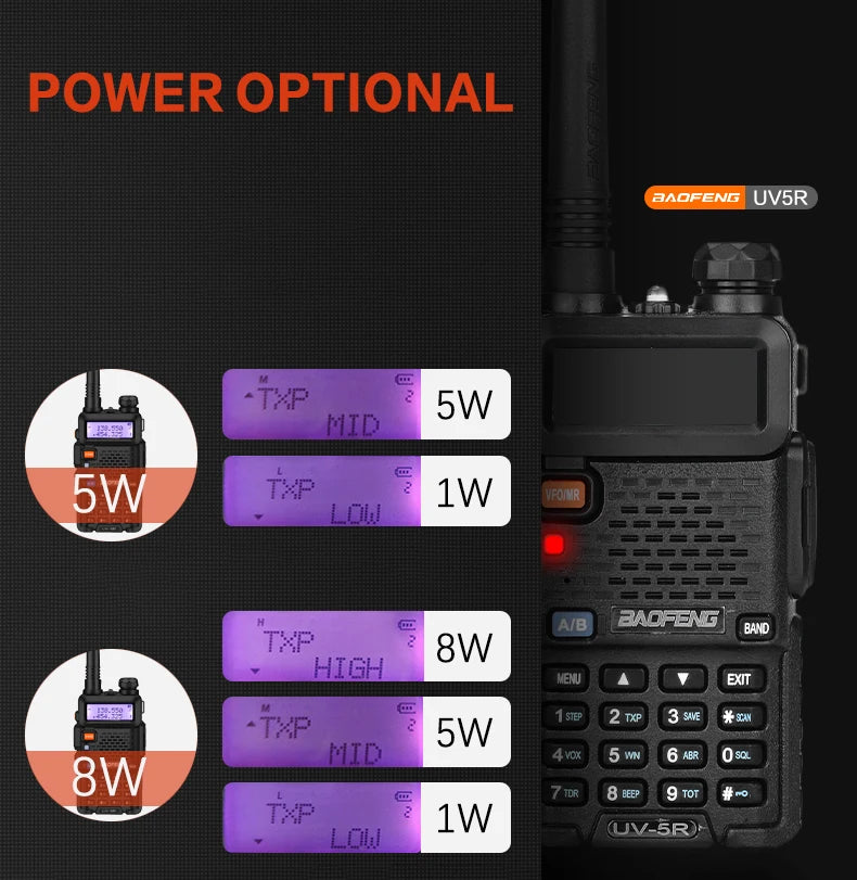 5W 8W Walkie Talkie 10km Range Two-Way Radio Compatible with UV-5R, UV-9R, UV-82, UV-8HX, UV-XR, Hunting & Outdoor Use