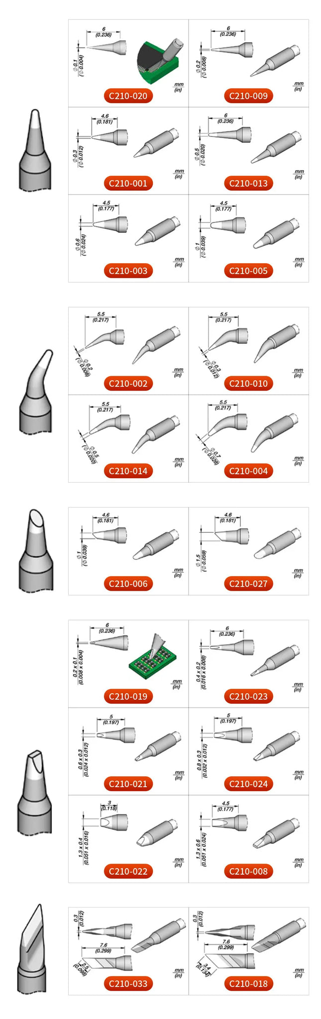 C210 Soldering Iron Tips for JBC T210-A & Sugon T26/T26D Handles, New Pack