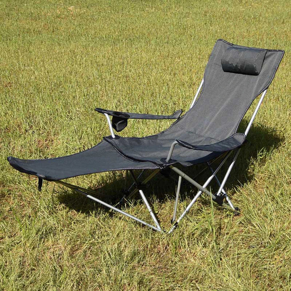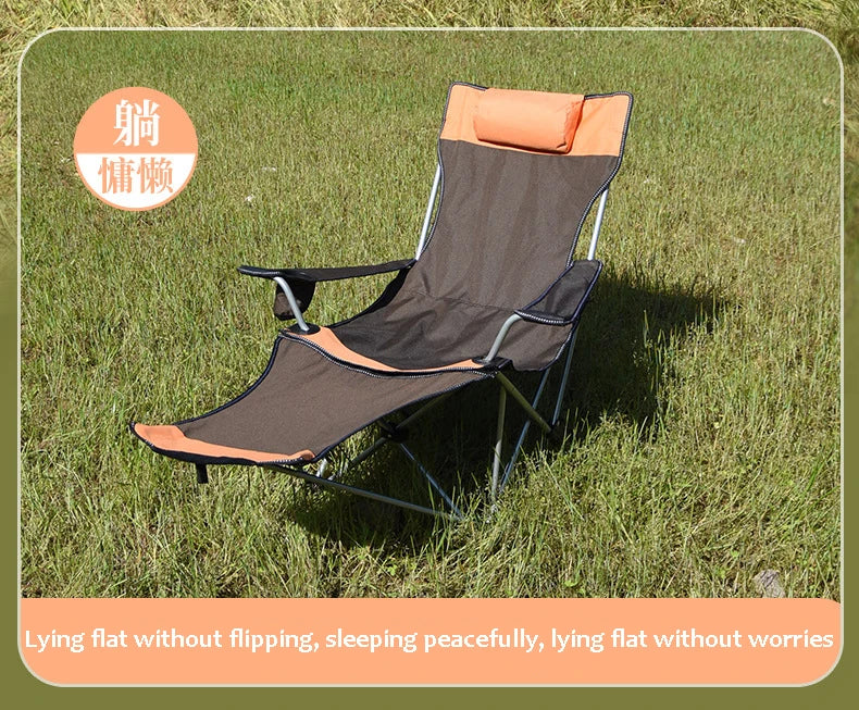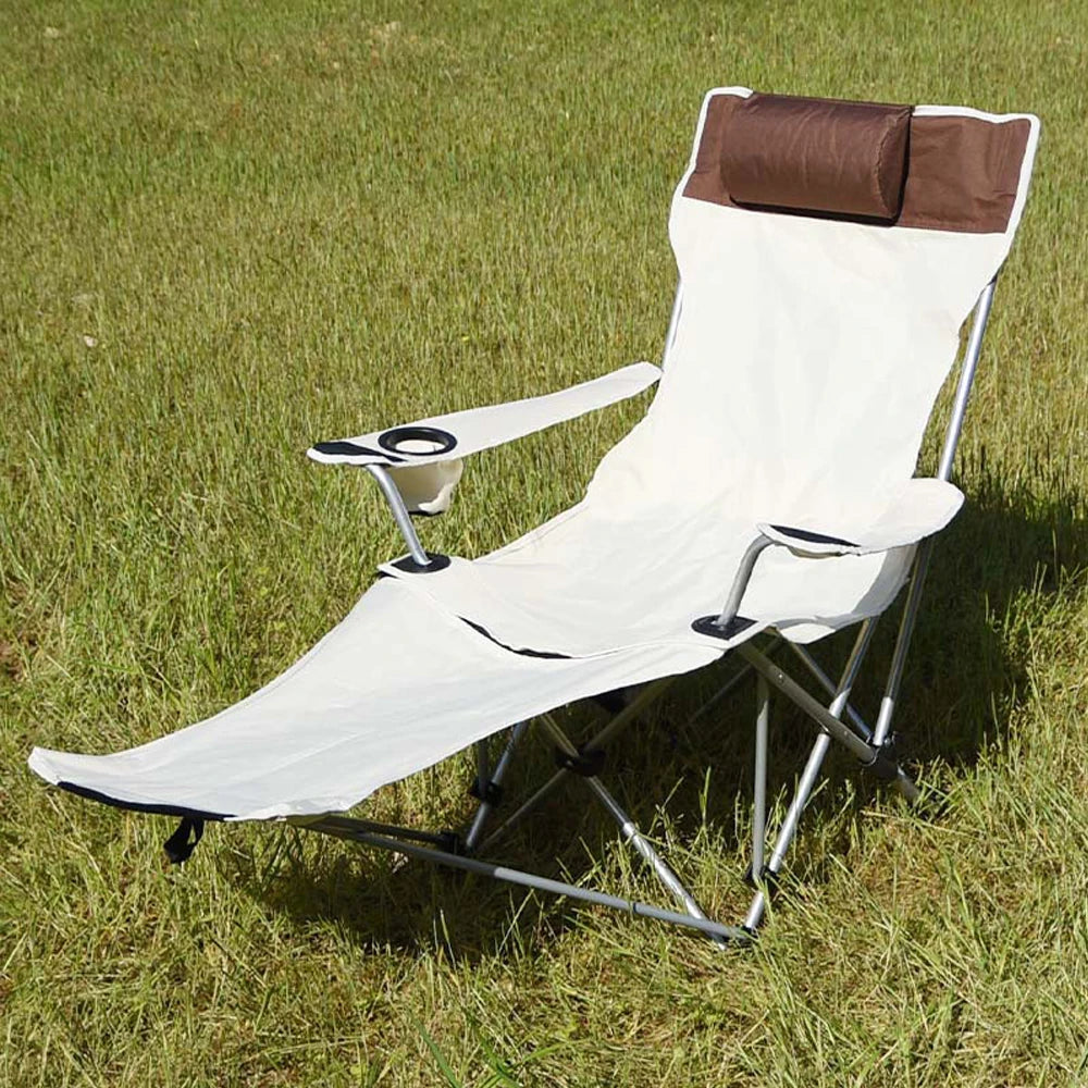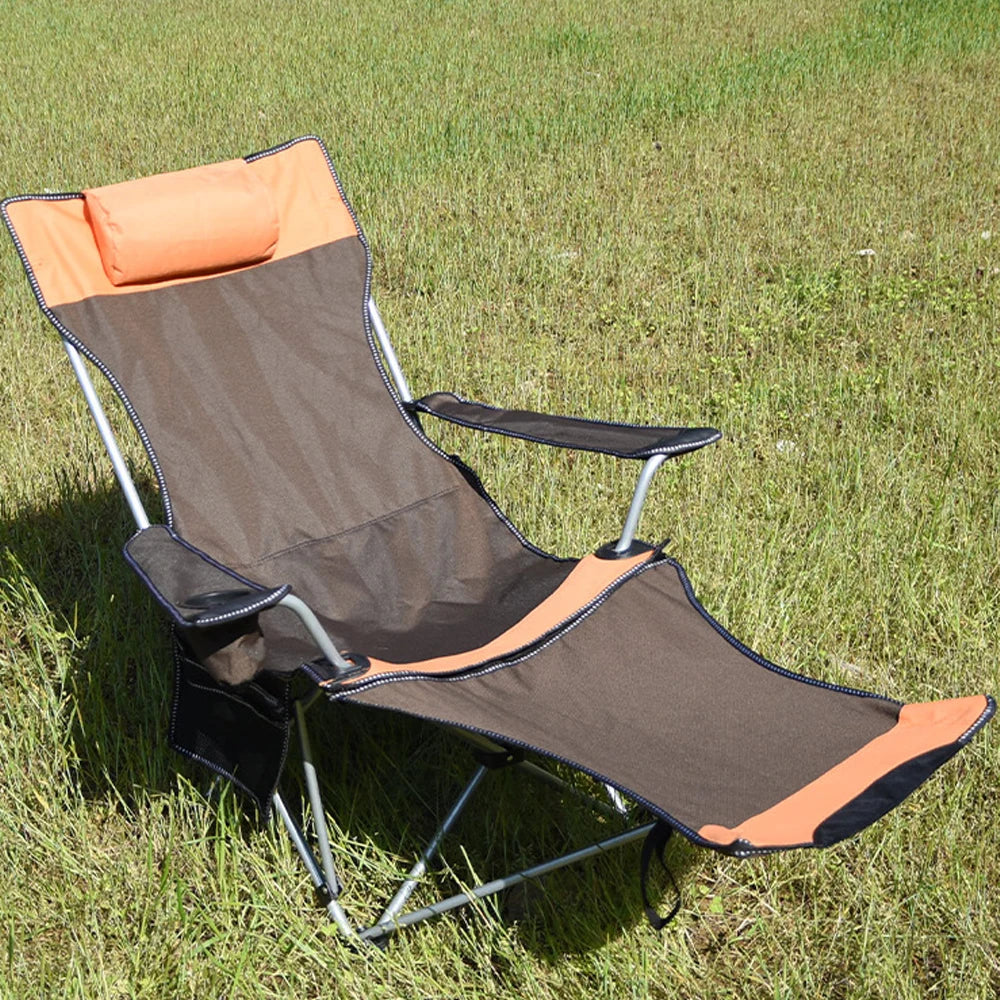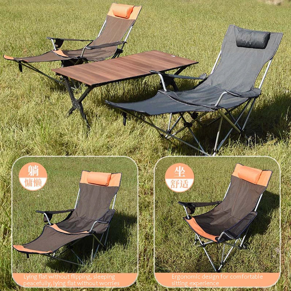 Folding Outdoor Camp Chair with Backrest and Footrest - Portable Bed Nap Lounge for Camping, Fishing, Beach
