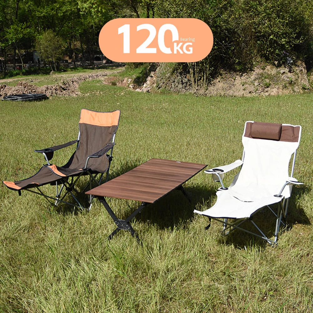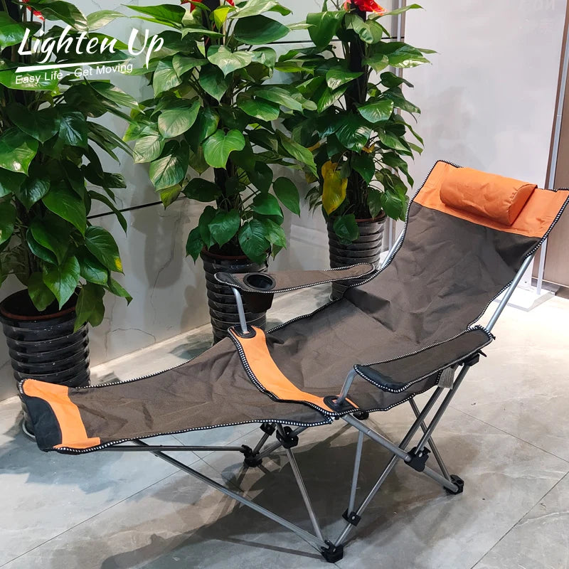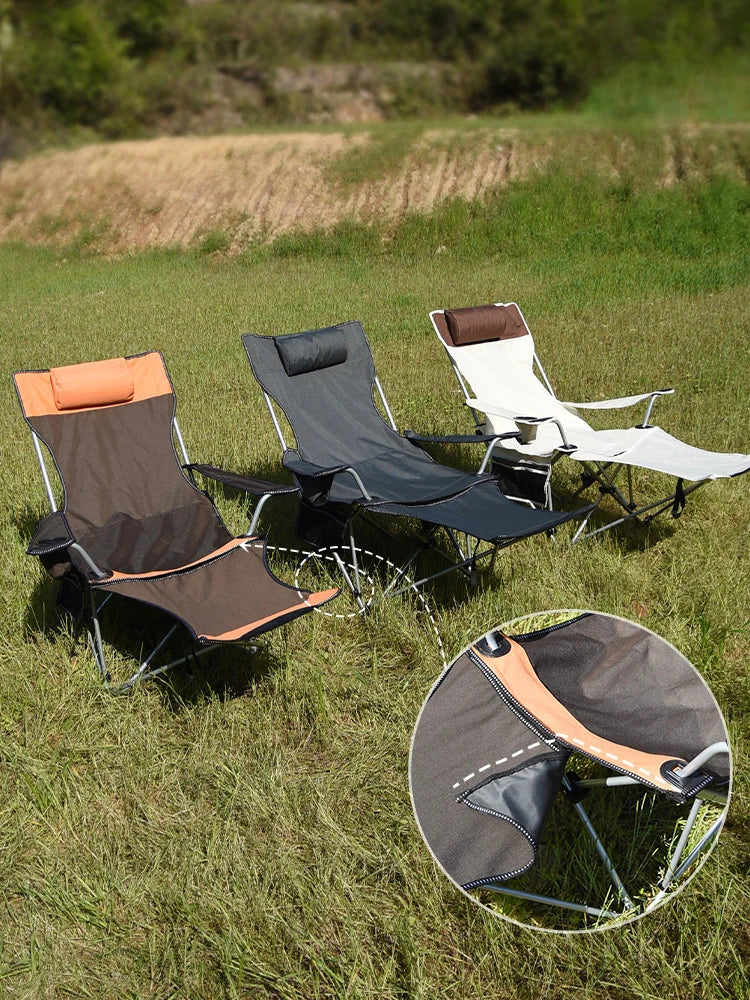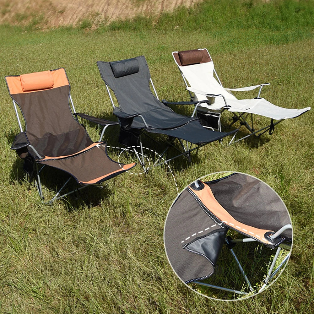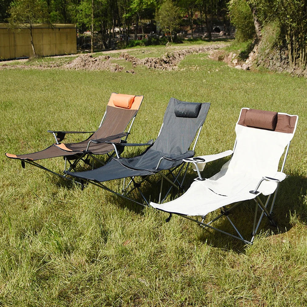 Folding Outdoor Camp Chair with Backrest and Footrest - Portable Bed Nap Lounge for Camping, Fishing, Beach