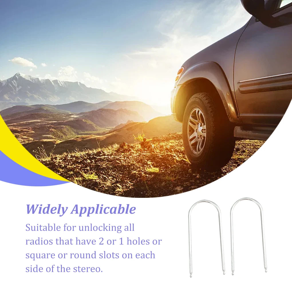 Enhance your car stereo maintenance with these premium alloy extraction keys, designed for efficiency and safety. Their robust, yet flexible construction ensures durability and protects the buckle during use. Easily disassemble your car’s CD player with these user-friendly tools, ideal for all radios featuring 2 or 1 holes or square/round slots. Simply slide the tools into place for a hassle-free unlocking experience that safeguards your stereo.