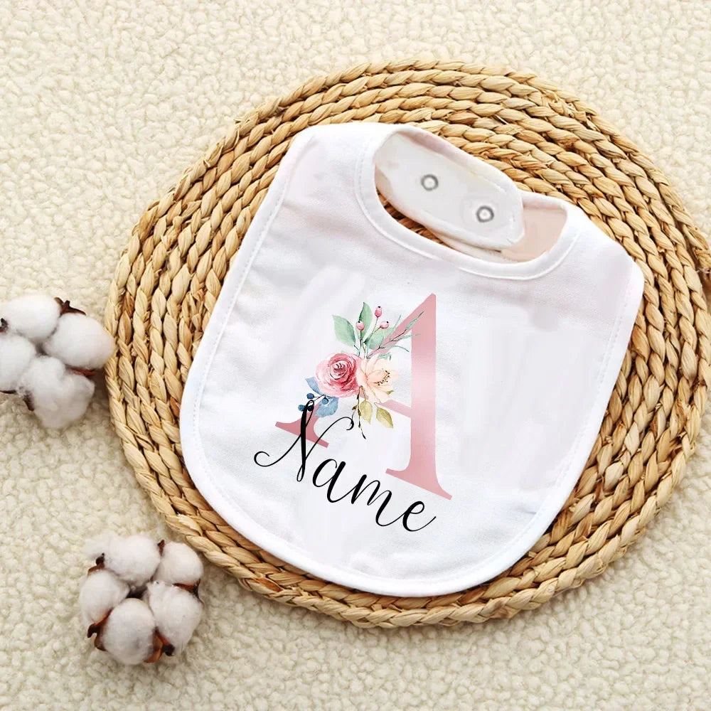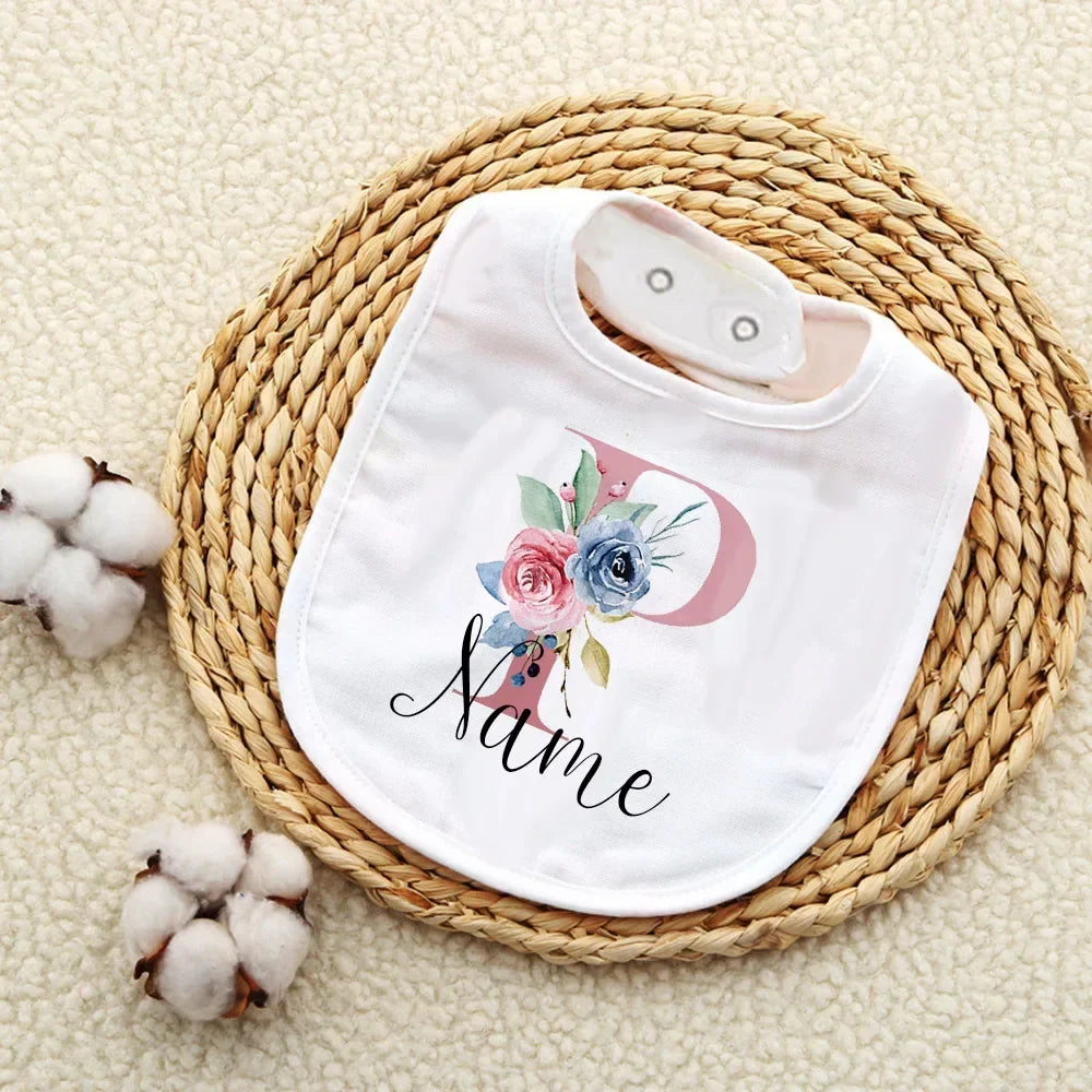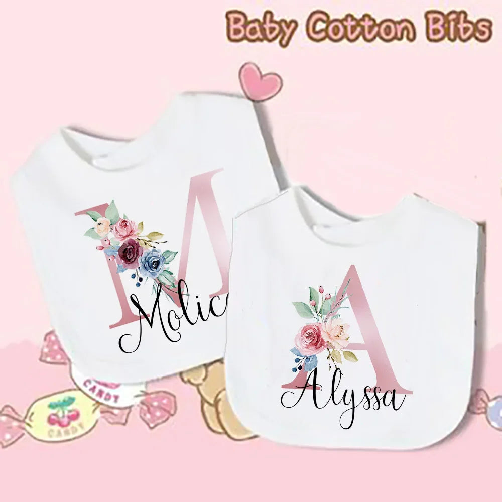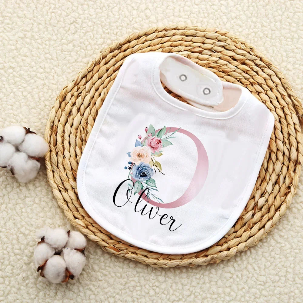 Custom Baby Bibs with Initial & Name Cotton Newborn Bib Flower Print Baptism Baby Shower Gift