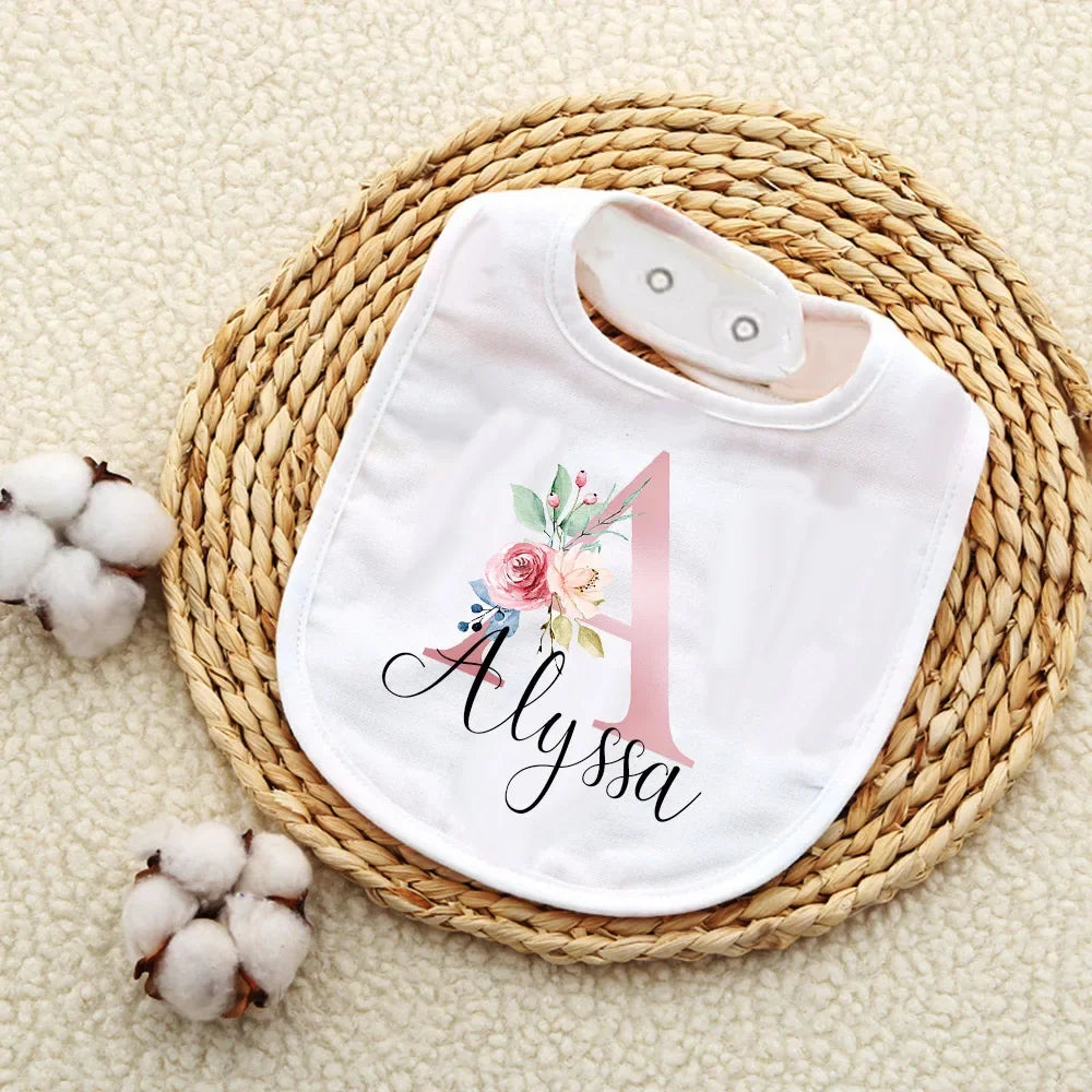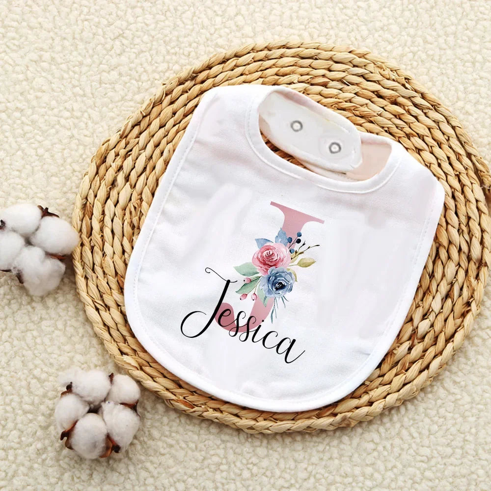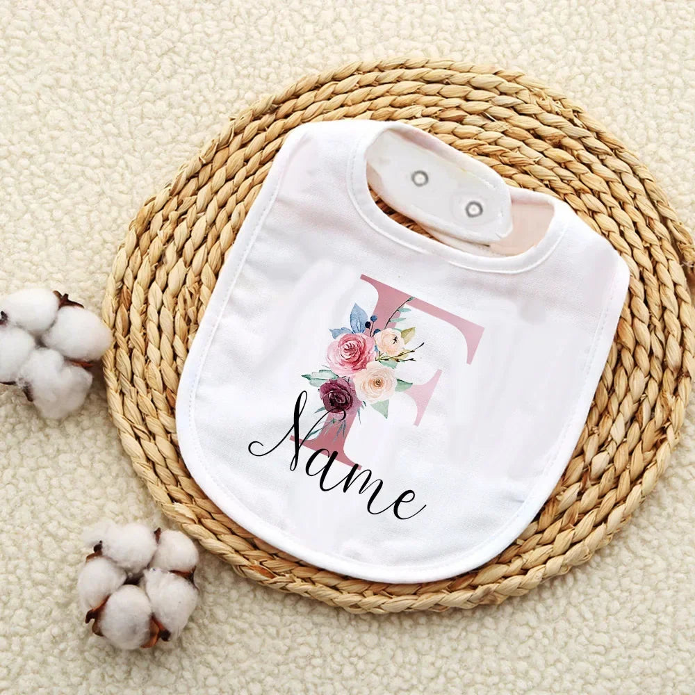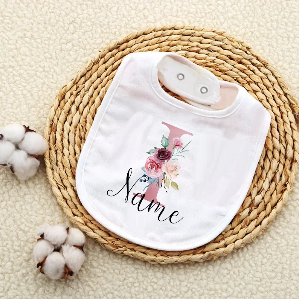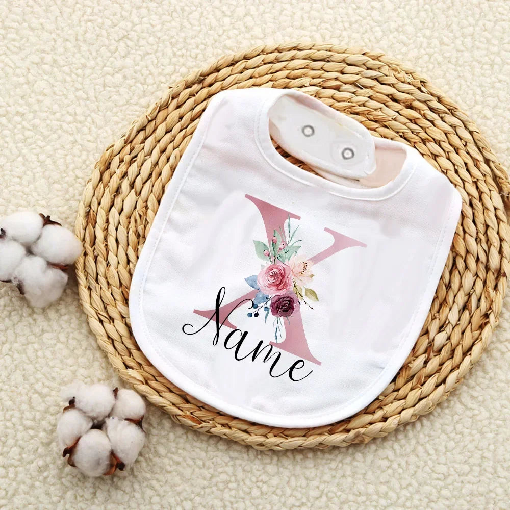 Custom Baby Bibs with Initial & Name Cotton Newborn Bib Flower Print Baptism Baby Shower Gift