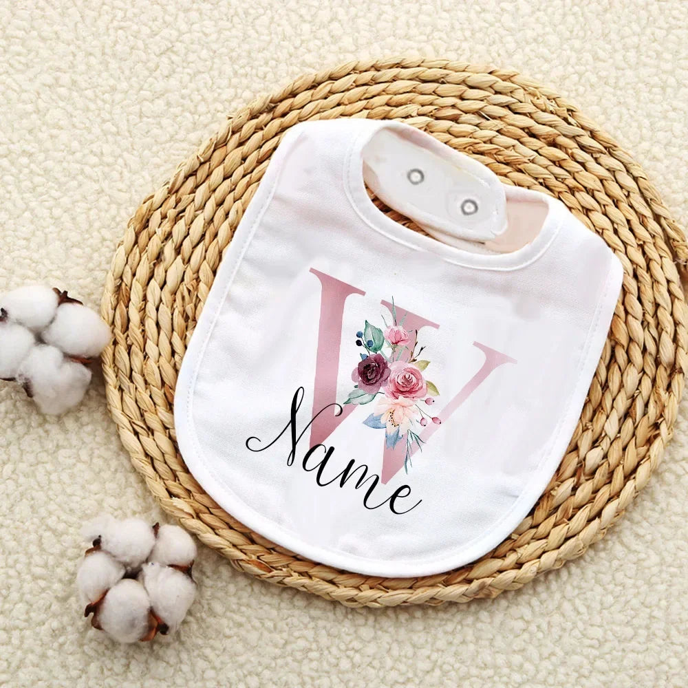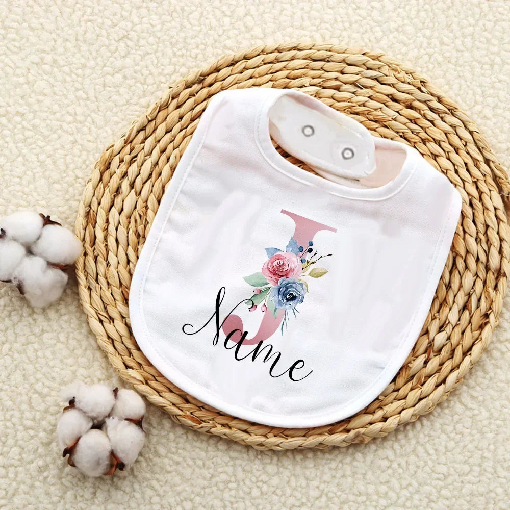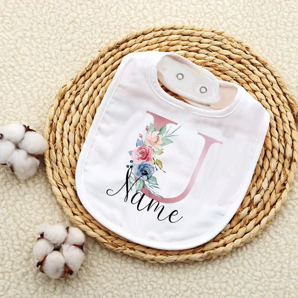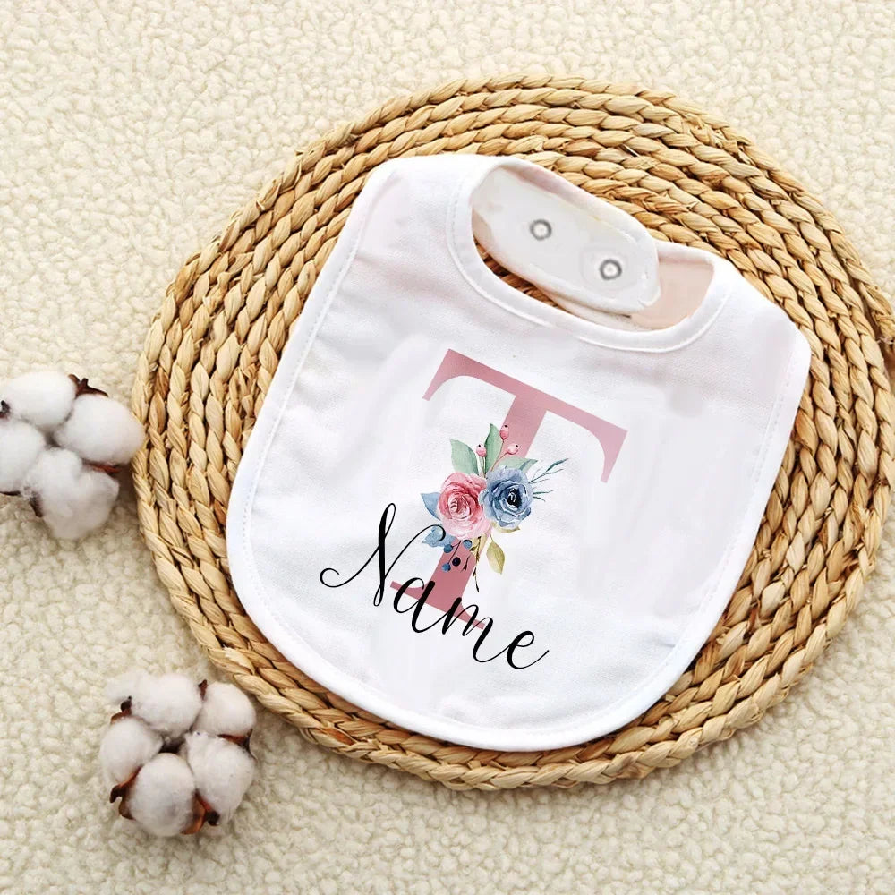 Custom Baby Bibs with Initial & Name Cotton Newborn Bib Flower Print Baptism Baby Shower Gift