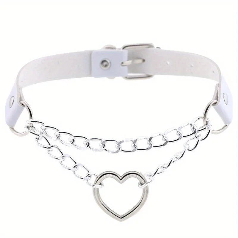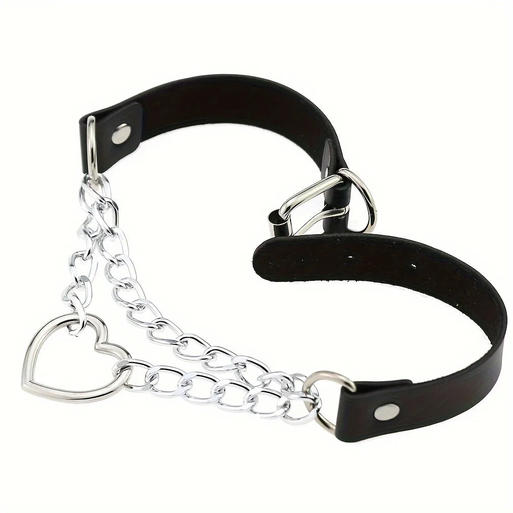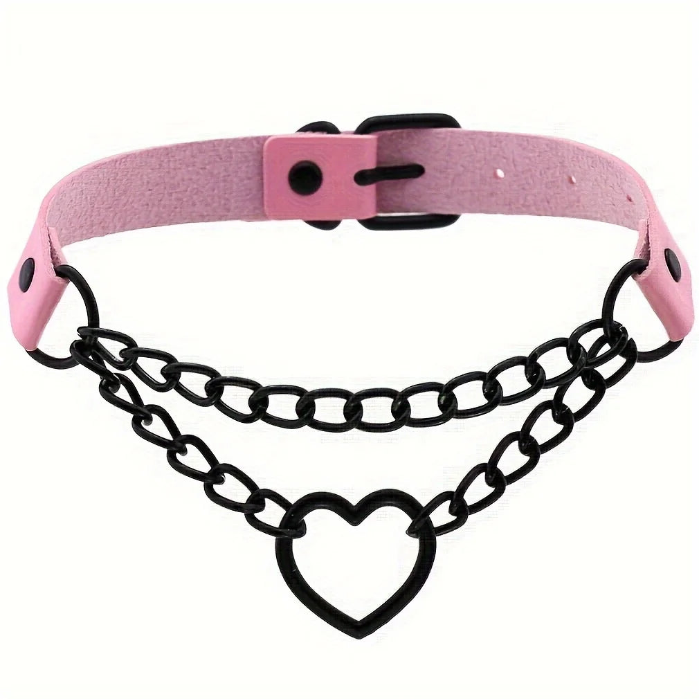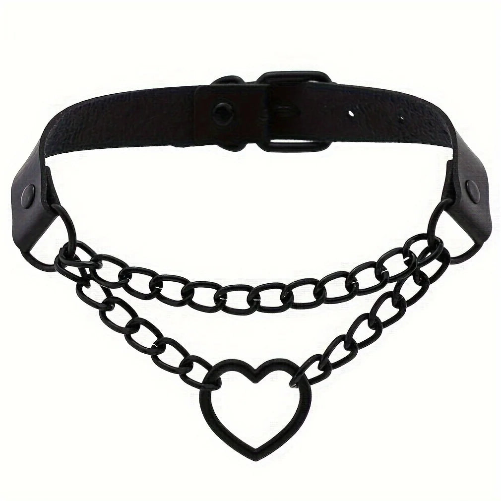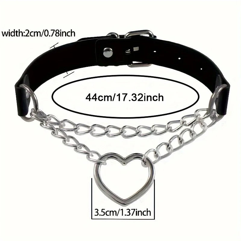 Custom Punk Gothic Heart Chain Collar Necklace Trendy Leather Choker