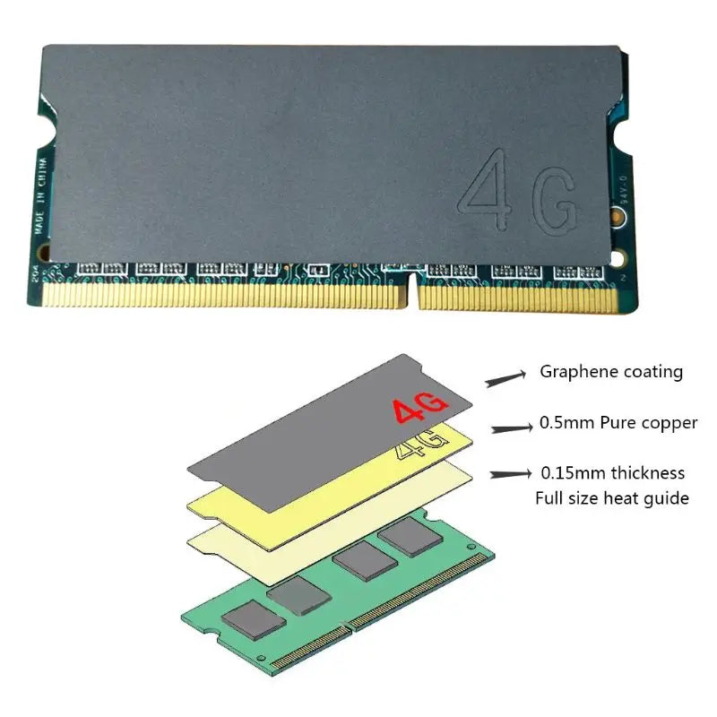 Copper Plated Graphene Laptop Memory Heatsink for DDR4 ECC RAM Cooling