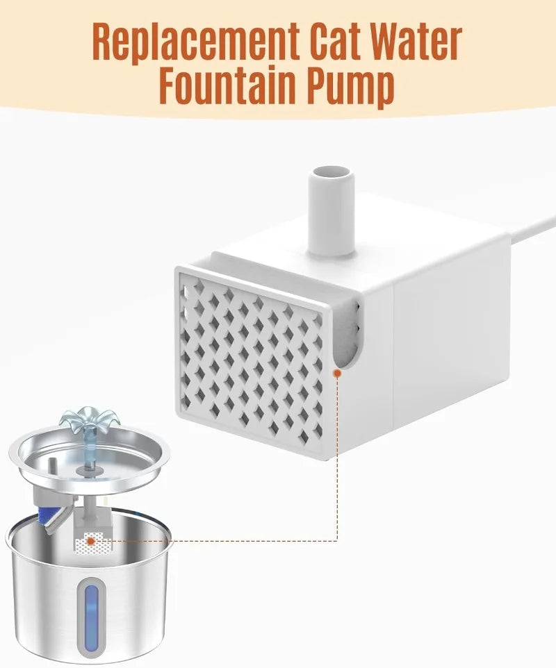 Keep your cat happily hydrated with this efficient and ultra-quiet pet water fountain pump. Built for durability and easy maintenance, it promises a smooth operation for up to two years with minimal effort. Operating at noise levels below 30 decibels, it creates a tranquil environment for your feline friend. The user-friendly design ensures easy disassembly and requires bi-weekly cleaning, making upkeep a breeze. With wide voltage compatibility, this pump offers dependable performance wherever it's needed.