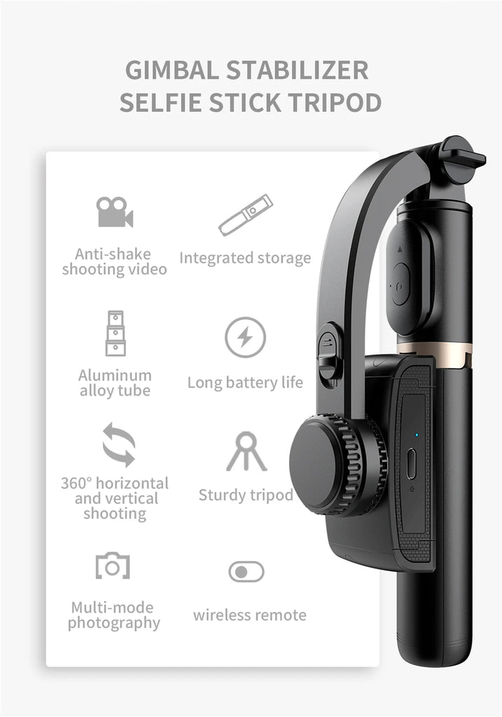 Foldable 2023 Gimbal Stabilizer Selfie Stick Tripod Bluetooth Shutter for iOS Android